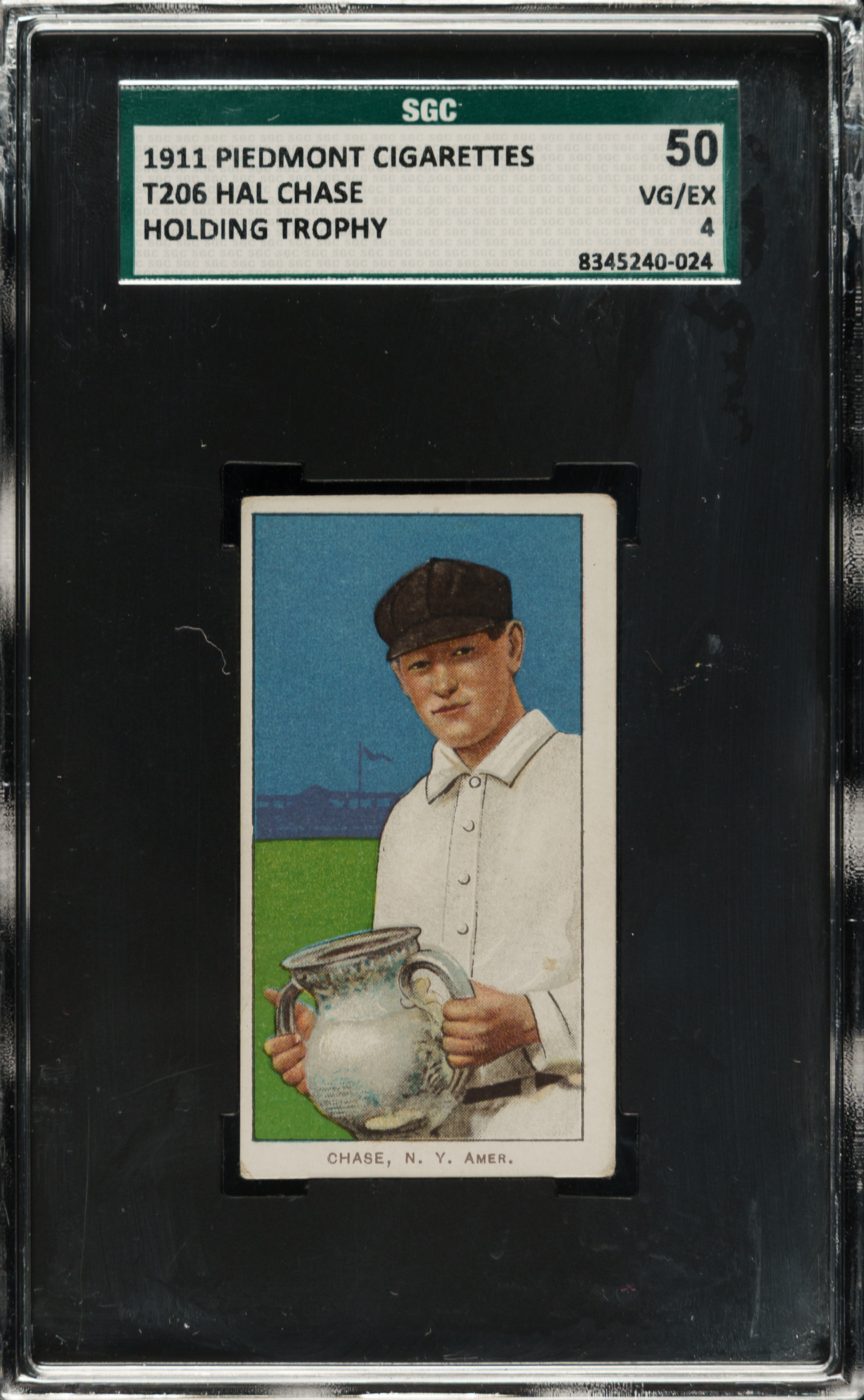 Lot # 194: 1909-1911 T206 White Border Hal Chase Holding Trophy SGC VG/EX 50