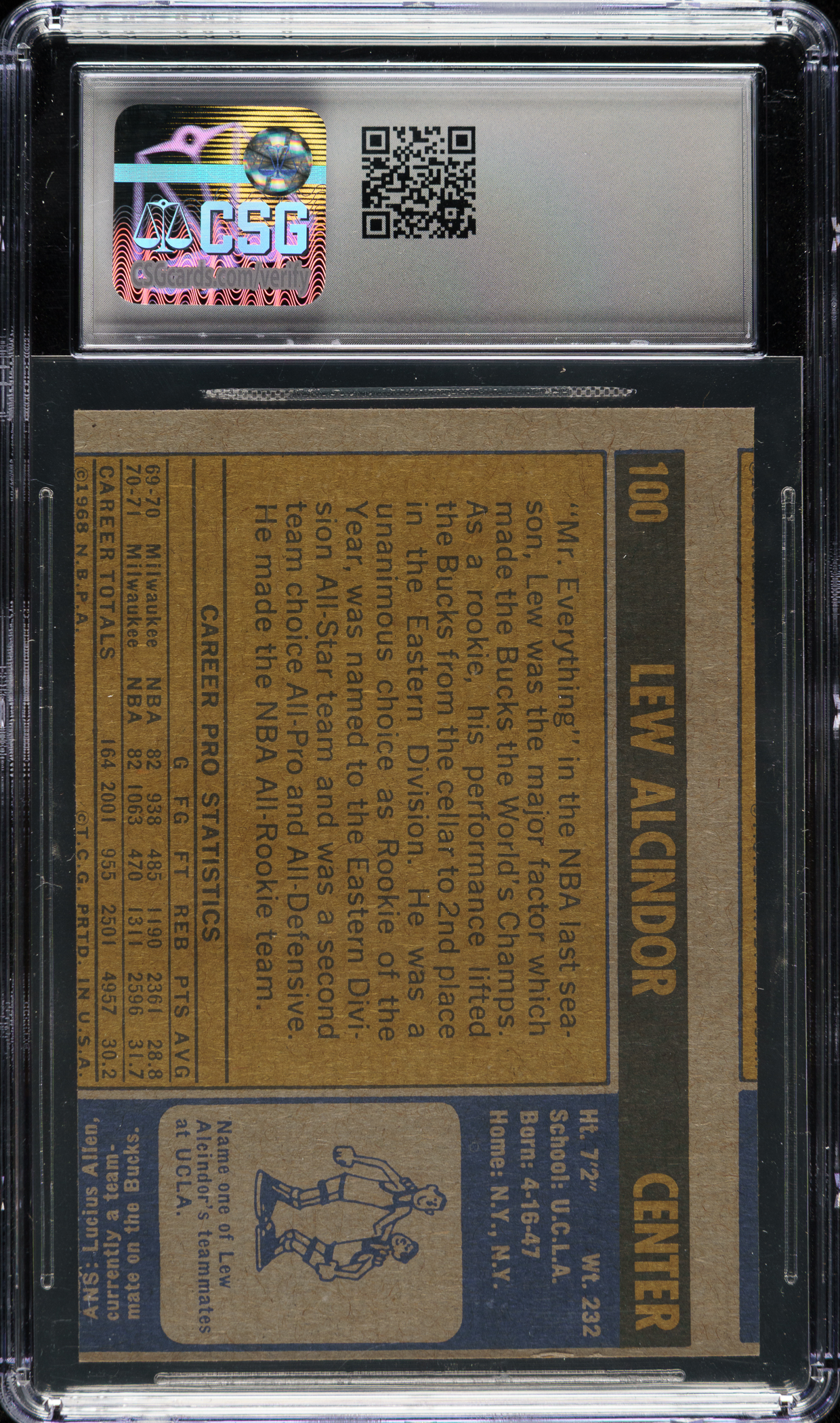 Graded EX+ 5.5 by CSG. Milwaukee Bucks basketball Hall of Famer Lew Alcindor.