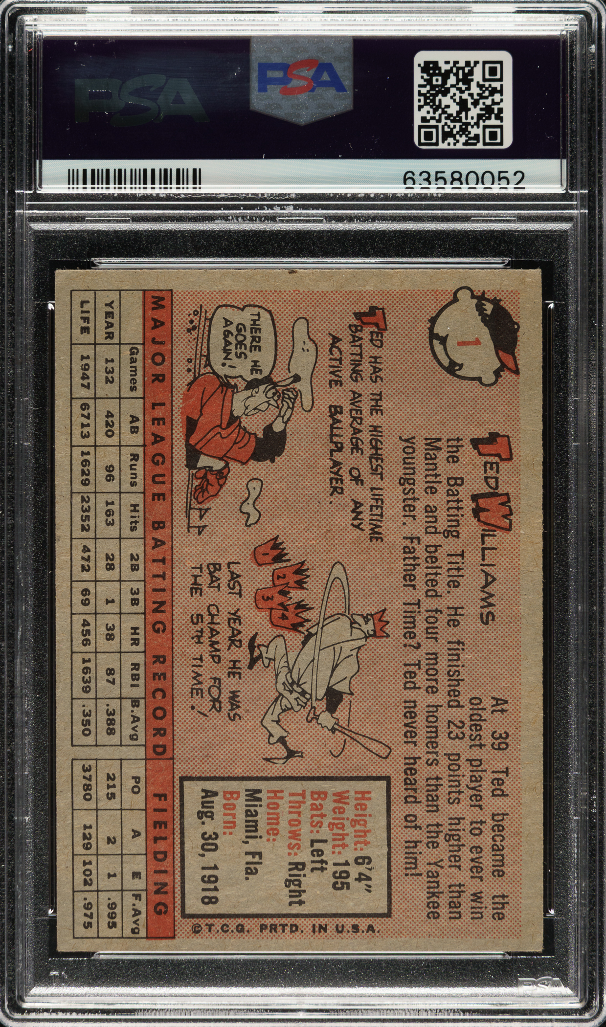 Lot # 1725: 1958 Topps #1 Ted Williams PSA EX 5