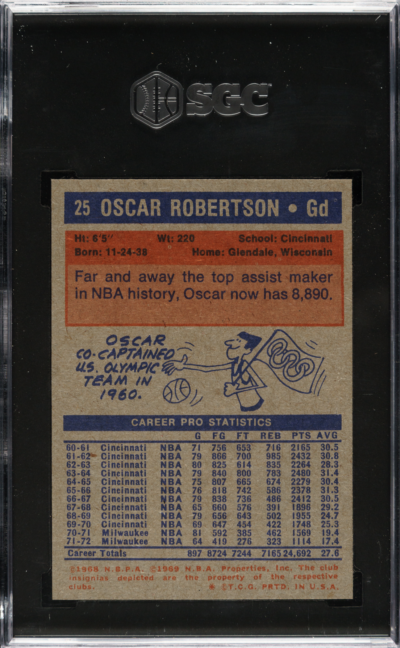 Graded NM/MT 8 by SGC. Milwaukee Bucks basketball Hall of Famer Oscar Robertson.
