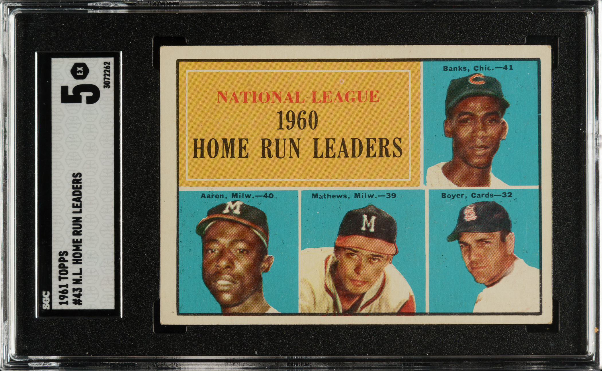 Graded EX 5 by SGC. Featuring Hall of Famers Hank Aaron (Milwaukee Braves), Ernie Banks (Chicago Cubs), and Eddie Mathews (Milwaukee Braves).