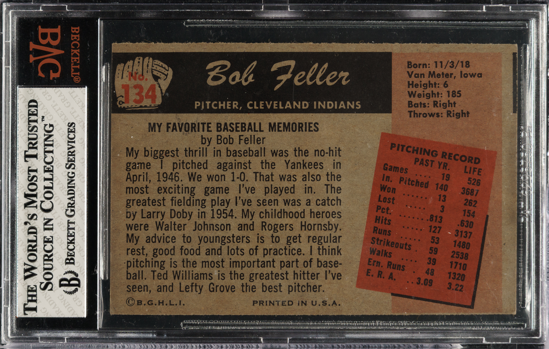 Graded EX-MT 6 by BVG. Cleveland Indians Hall of Famer Bob Feller.