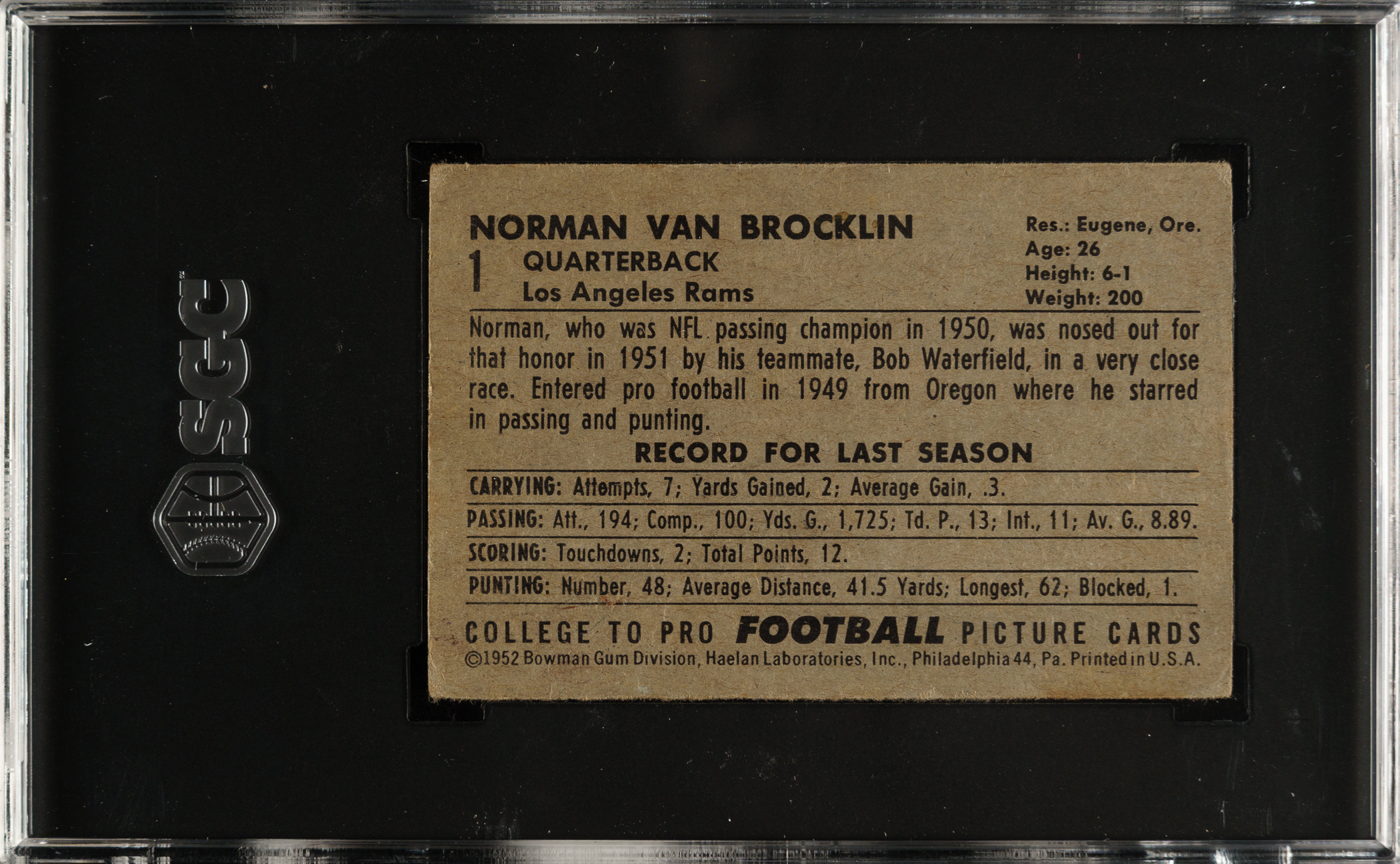 Graded POOR 1 by SGC. Los Angeles Rams football Hall of Famer Norman Van Brocklin.