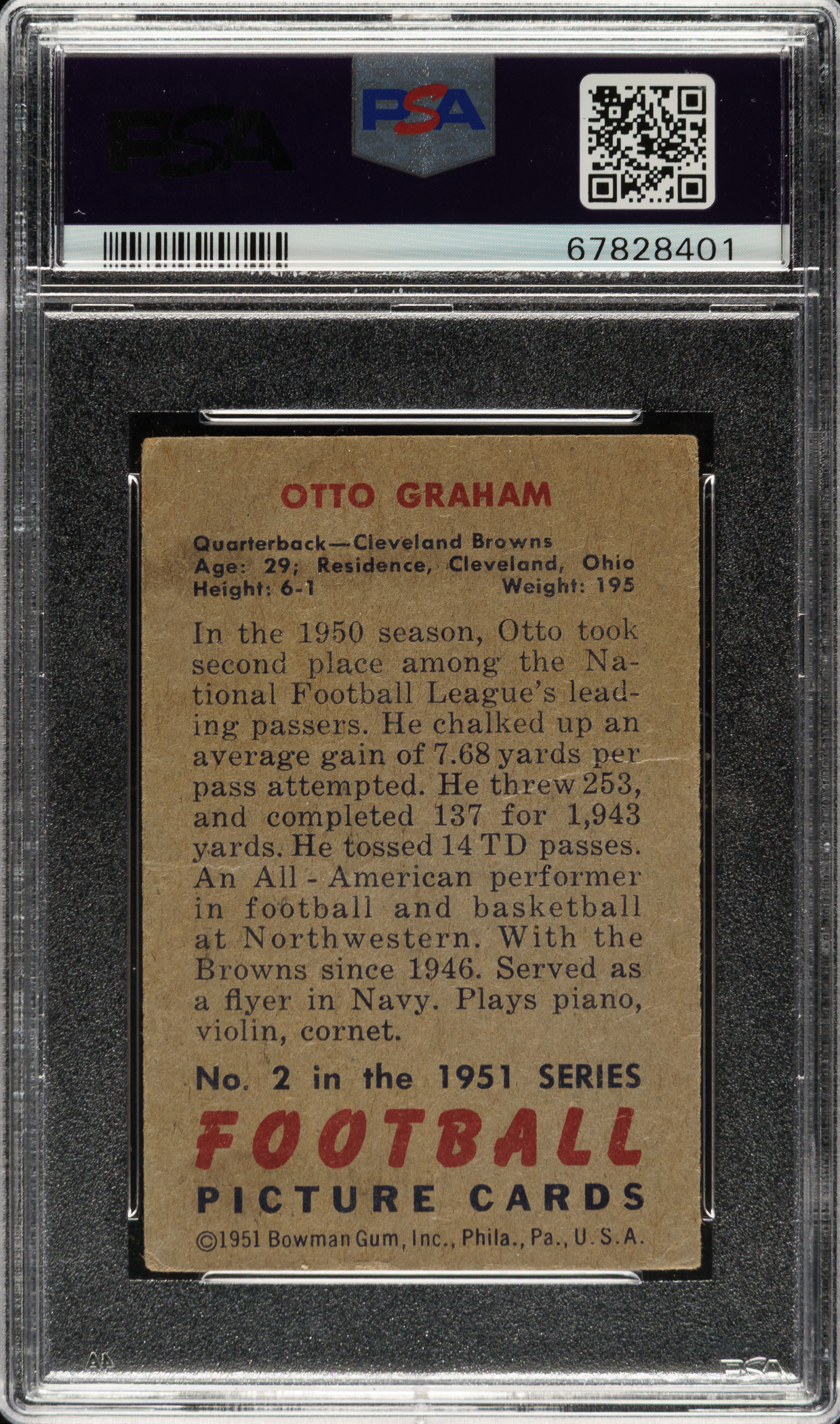 Graded POOR 1 by PSA. Cleveland Browns football Hall of Famer Otto Graham.