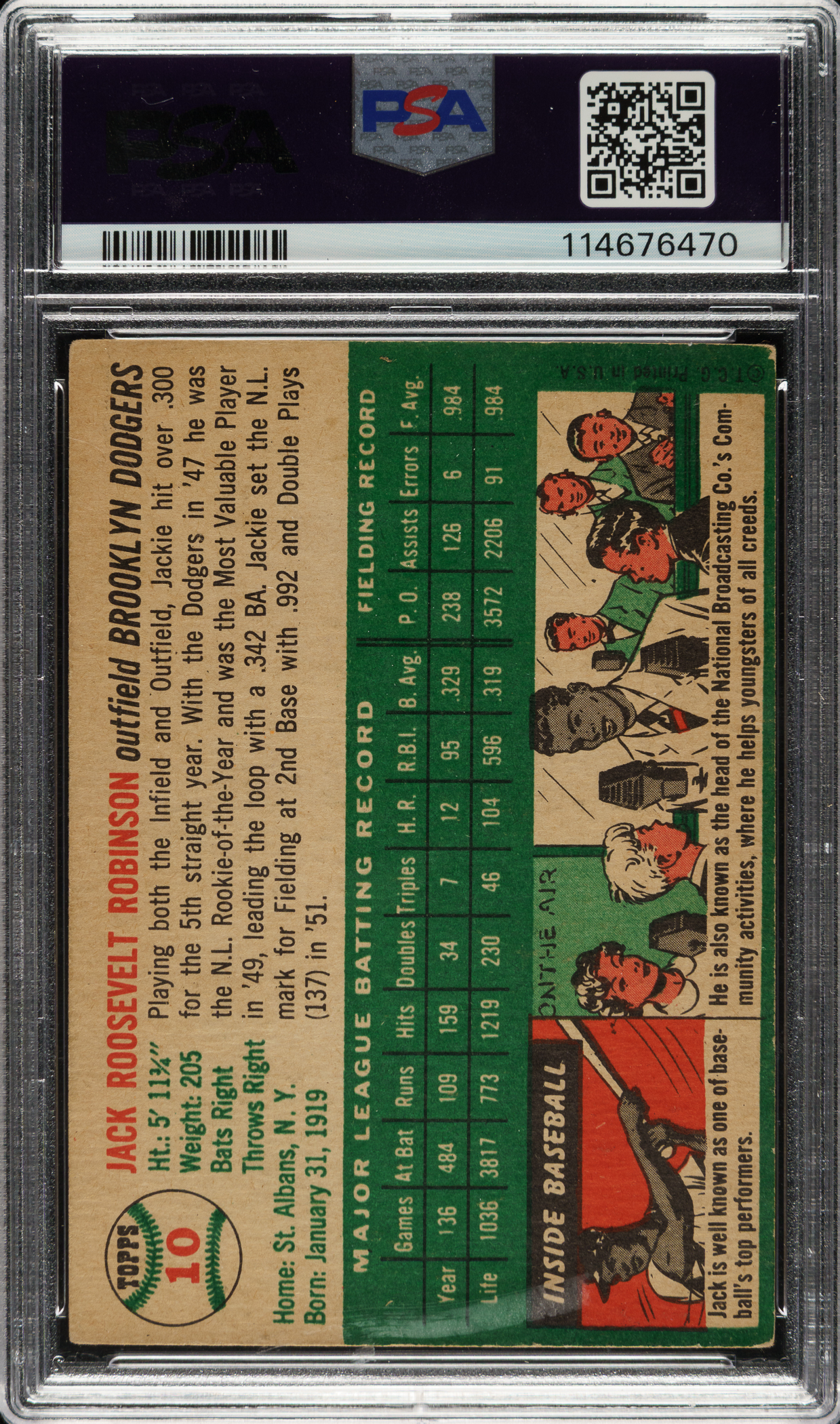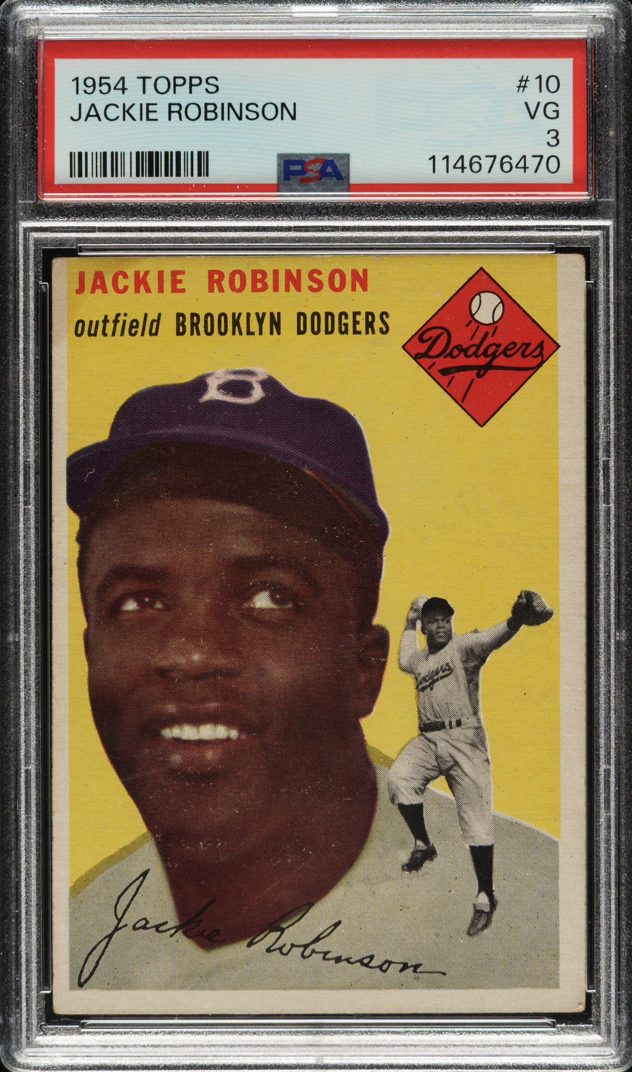 Graded VG 3 by PSA. Brooklyn Dodgers Hall of Famer Jackie Robinson.