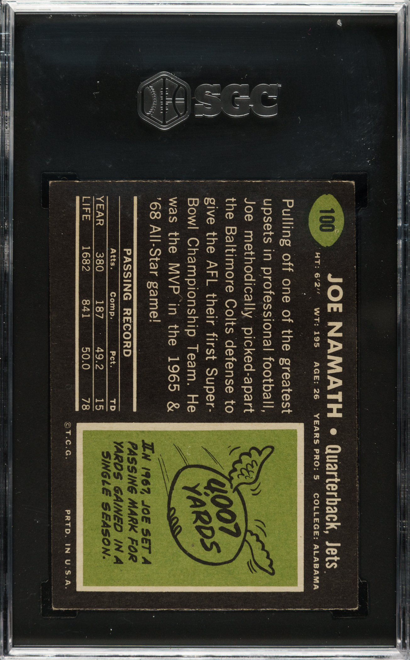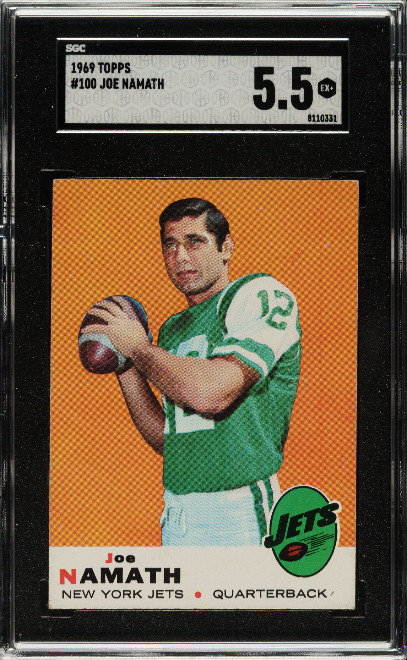 Graded EX+ 5.5 by SGC. New York Jets football Hall of Famer Joe Namath.