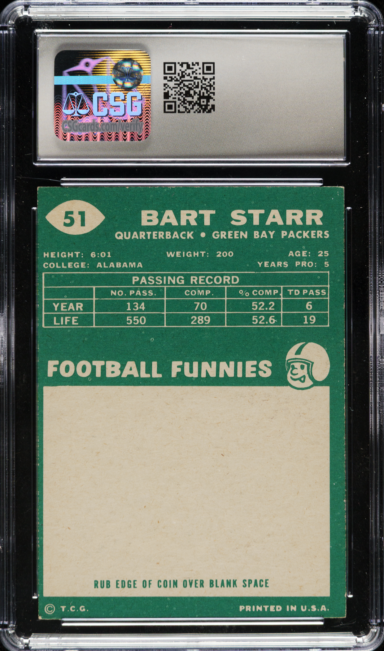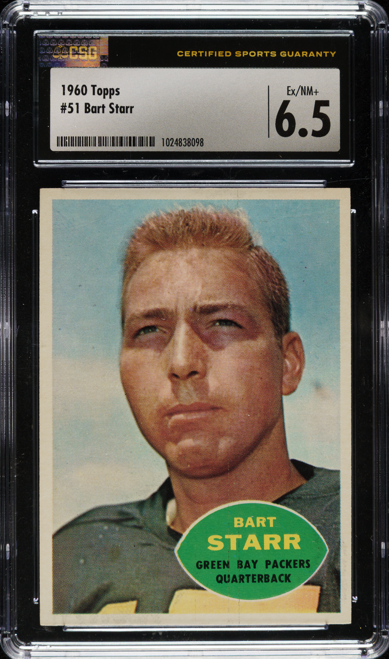 Graded EX/NM+ 6.5 by CSG. Green Bay Packers football Hall of Famer Bart Starr.
