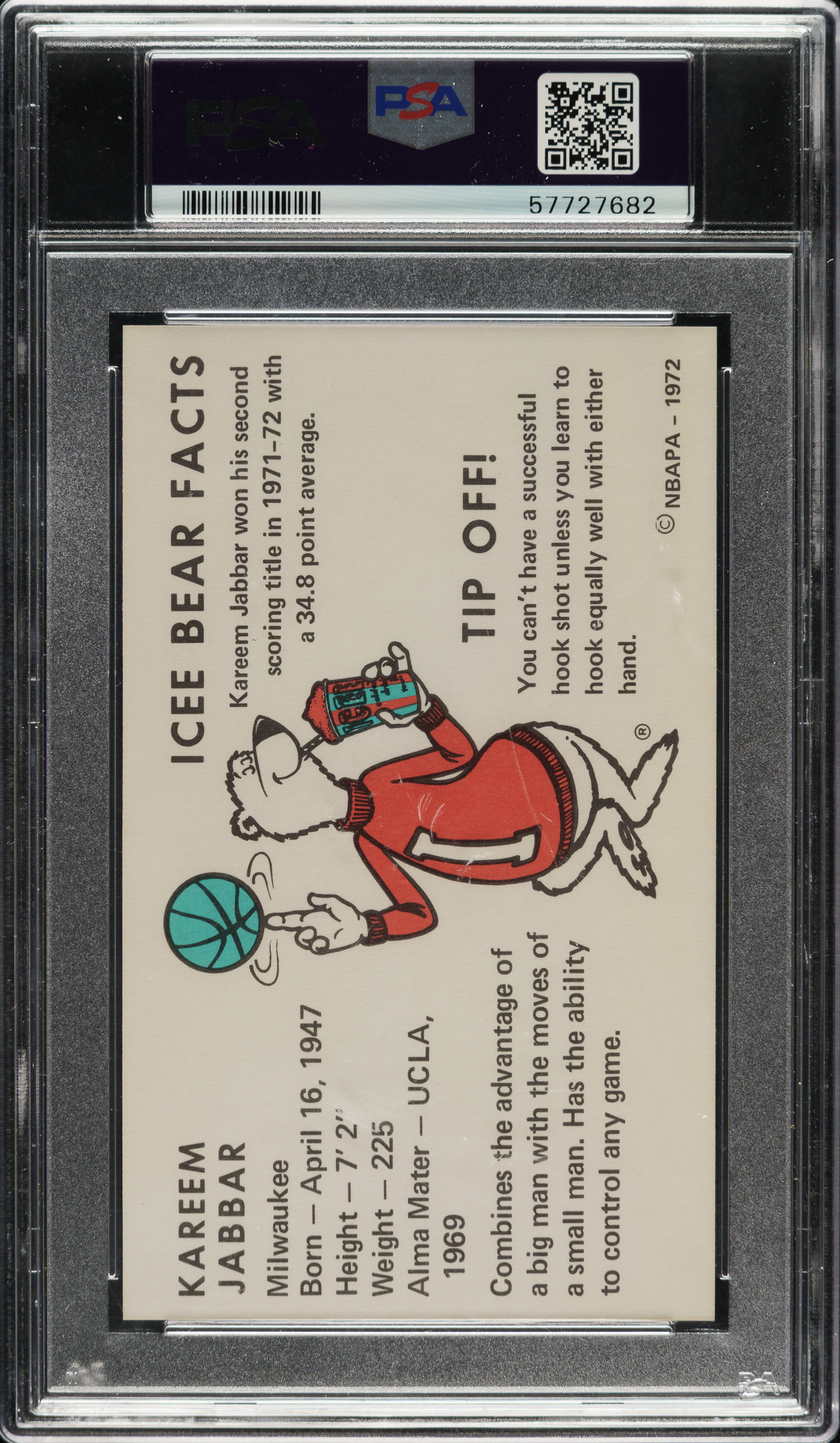 Graded NM-MT 8 by PSA. Milwaukee Bucks basketball Hall of Famer Kareem Abdul-Jabbar.
