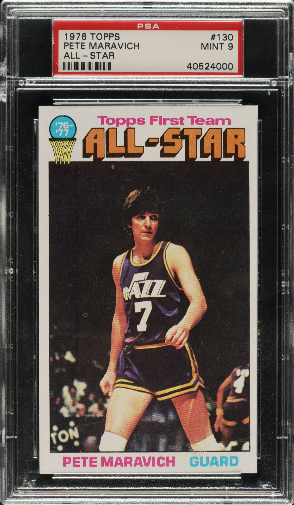 Lot # 2880: 1976-1977 Topps Basketball #130 Pete Maravich All-Star PSA MINT 9