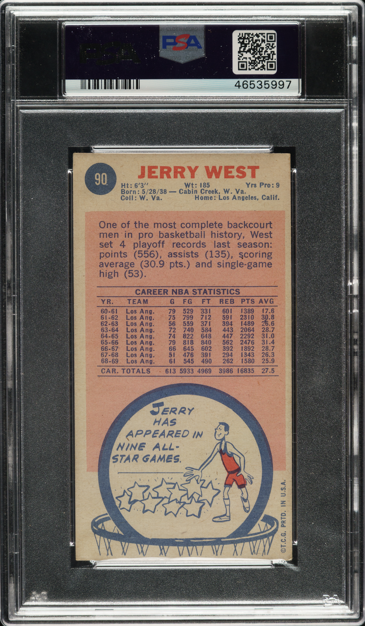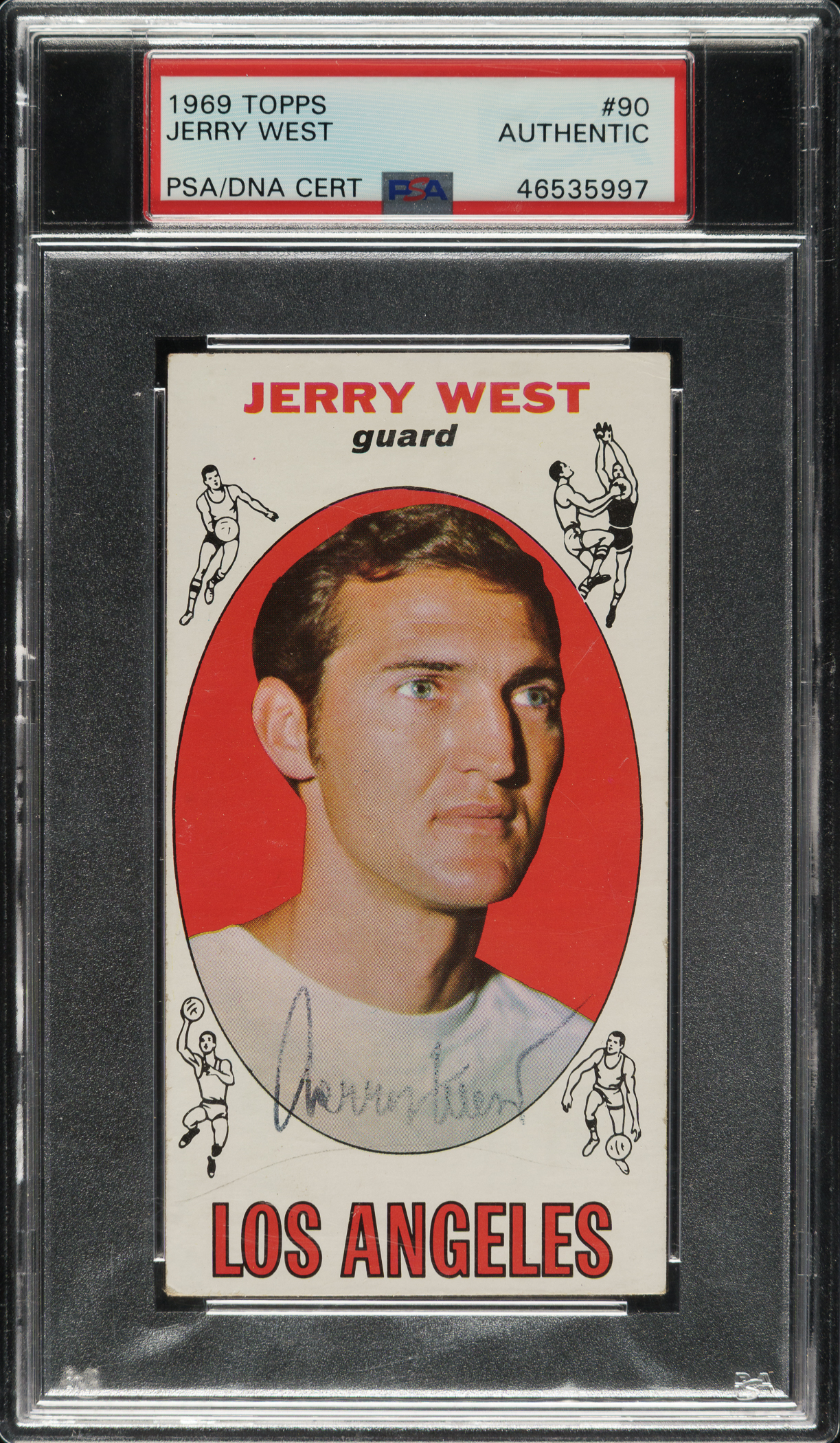 PSA/DNA has encapsulated the card, grading the signature Authentic. Los Angeles Lakers basketball Hall of Famer Jerry West.