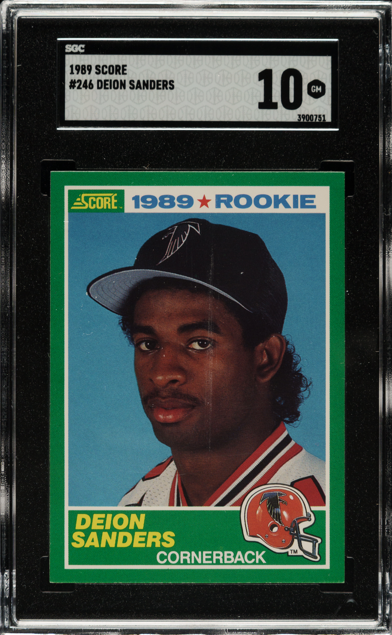 Graded GEM MINT 10 by SGC. Atlanta Falcons football Hall of Famer Deion Sanders.