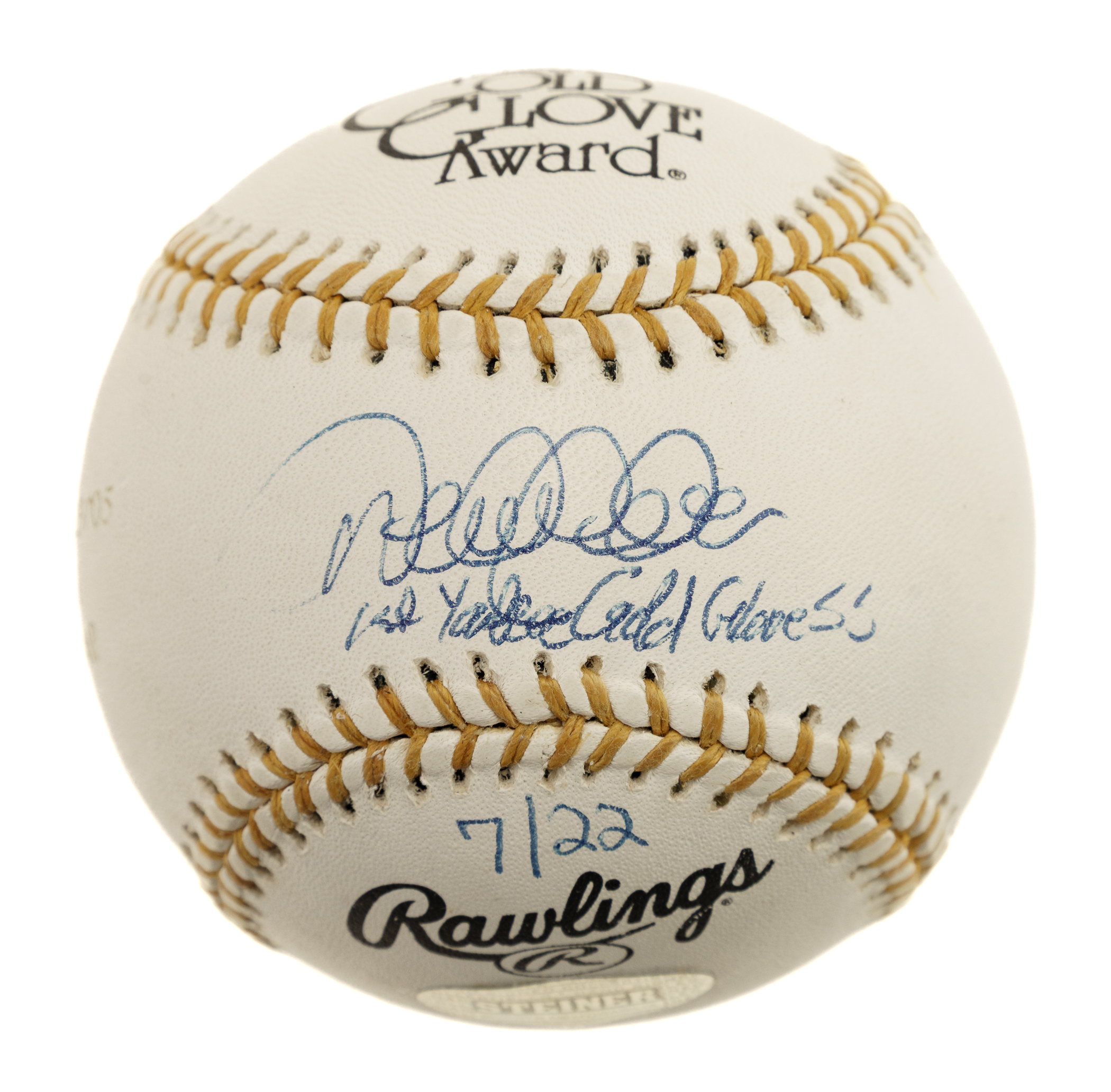 Lot # 2509: Derek Jeter Single-Signed Gold Glove Award Limited-Edition Baseball with "1st Yankee Gold Glove SS" Inscription - MLB