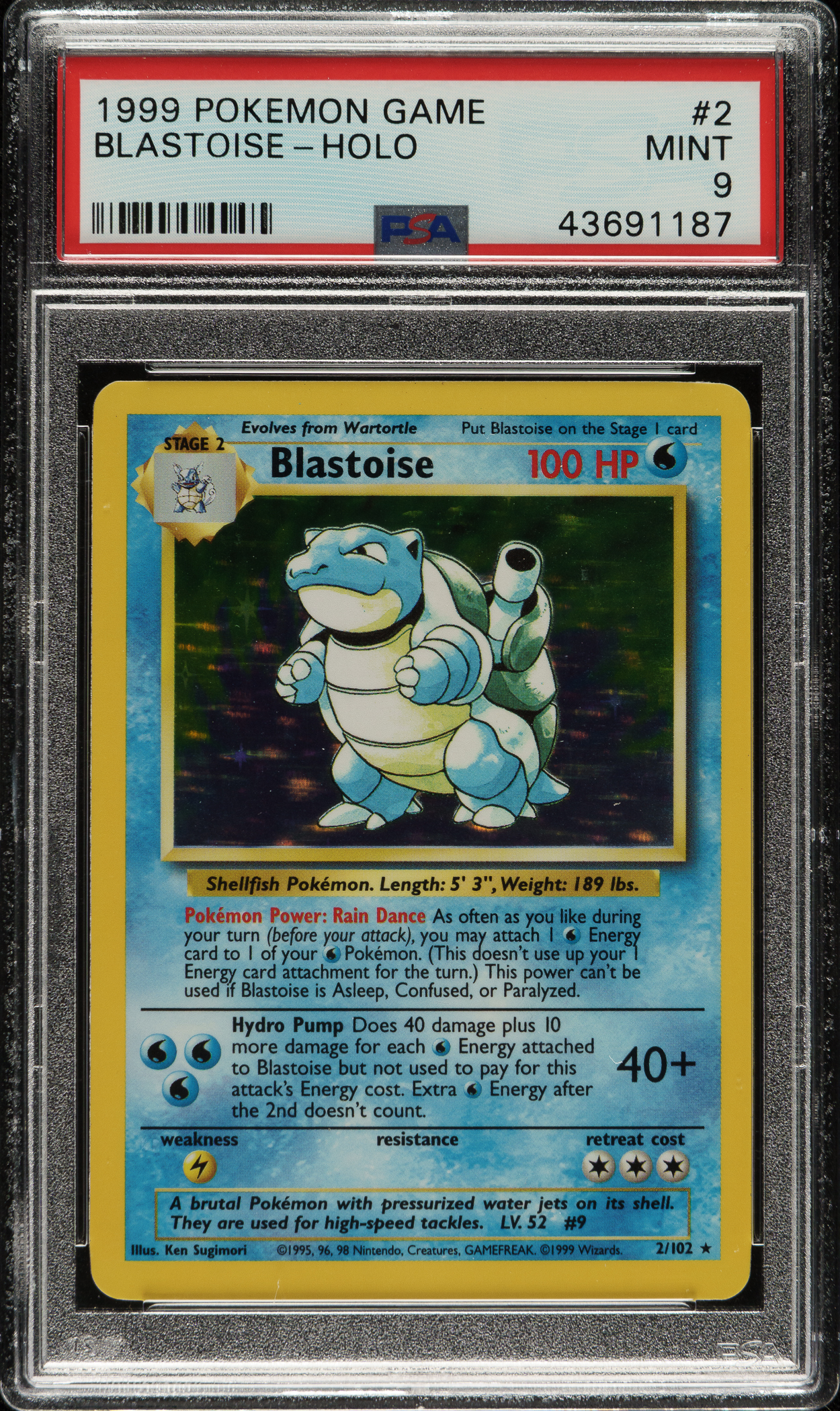 Lot # 2881: 1999 Pokemon Base Set #2 Blastoise Holographic PSA MINT 9