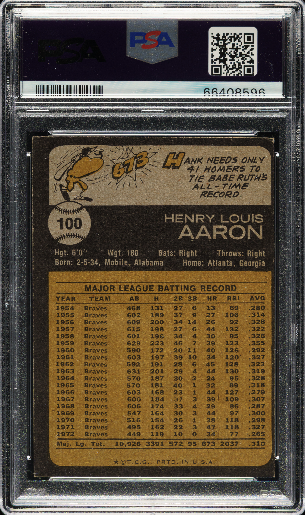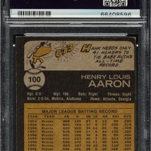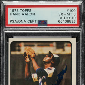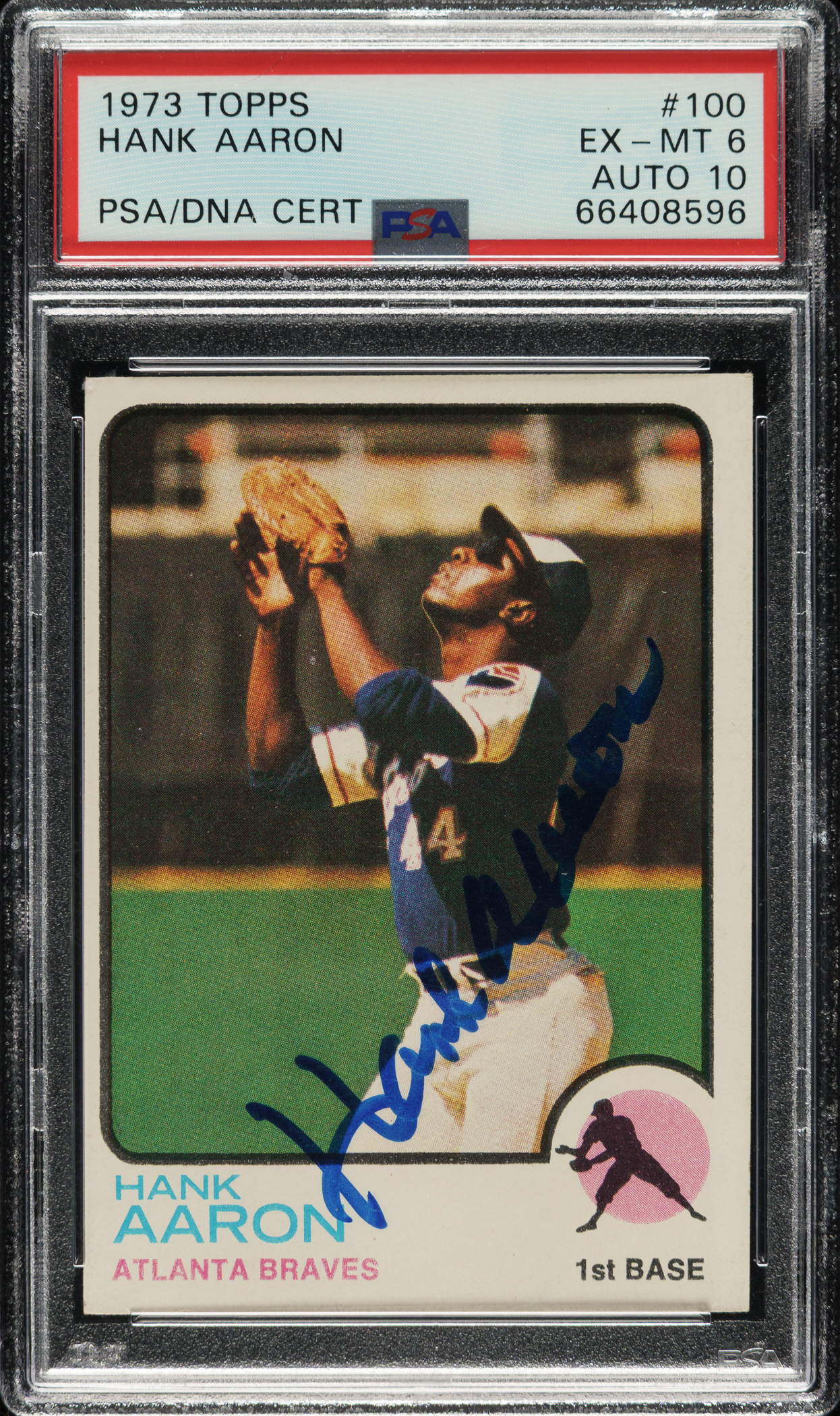 PSA/DNA has encapsulated the card, grading the signature GEM MINT 10 and the card EX-MT 6. Atlanta Braves Hall of Famer Hank Aaron.