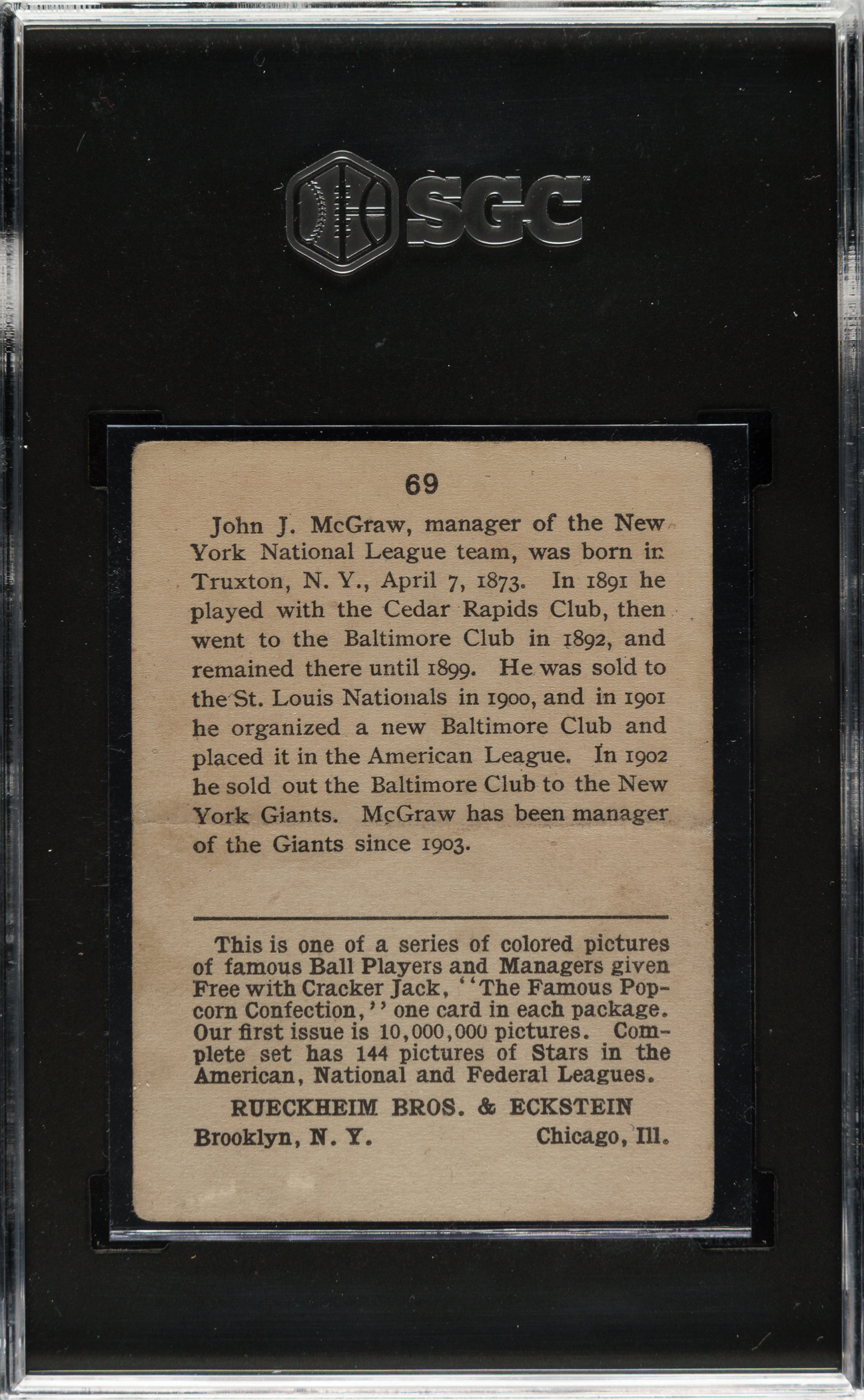 Graded GOOD+ 2.5 by SGC. New York Giants Hall of Famer John McGraw.