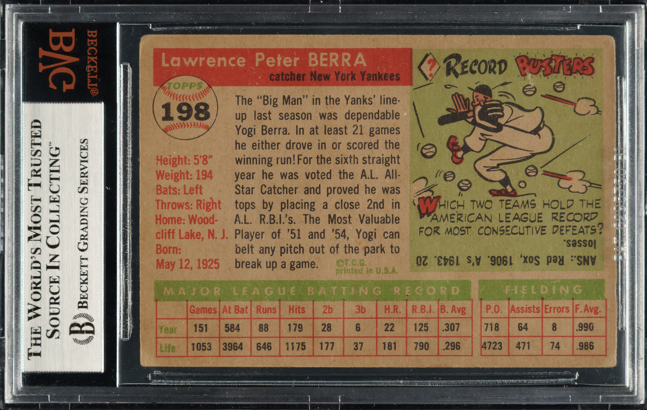 Graded VG-EX 4 by BVG. New York Yankees Hall of Famer Yogi Berra.