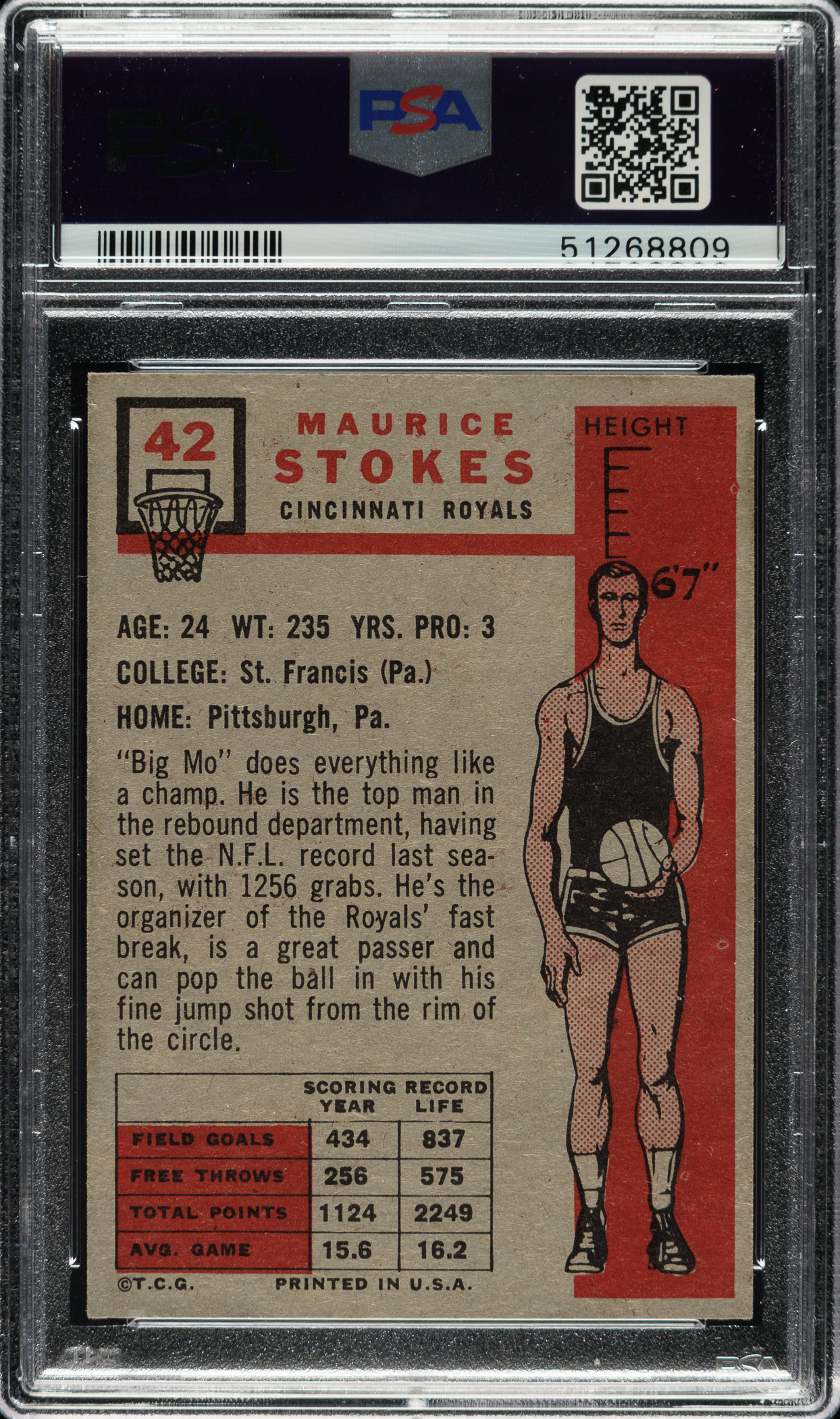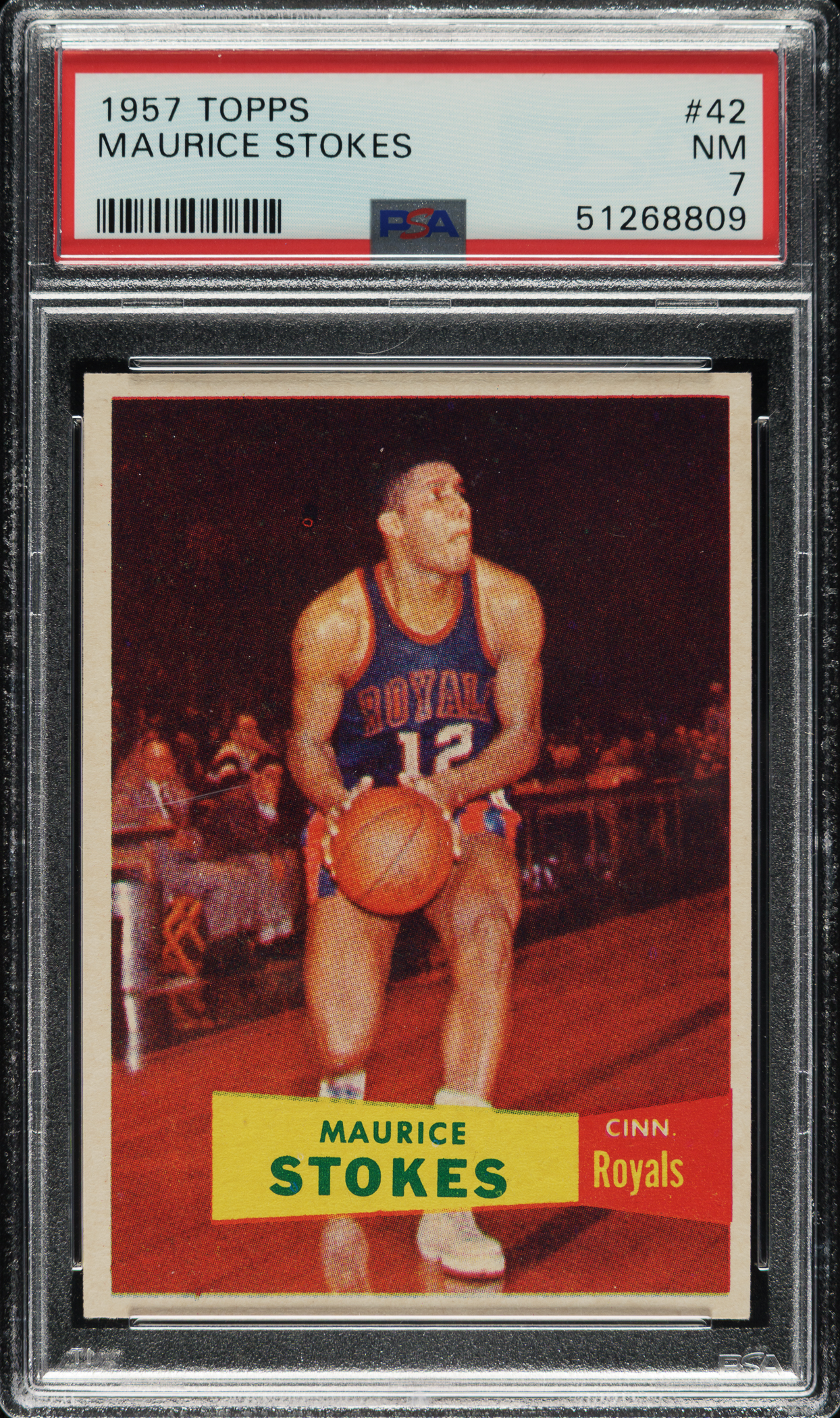Graded NM 7 by PSA. Cincinnati Royals basketball Hall of Famer Maurice Stokes.
