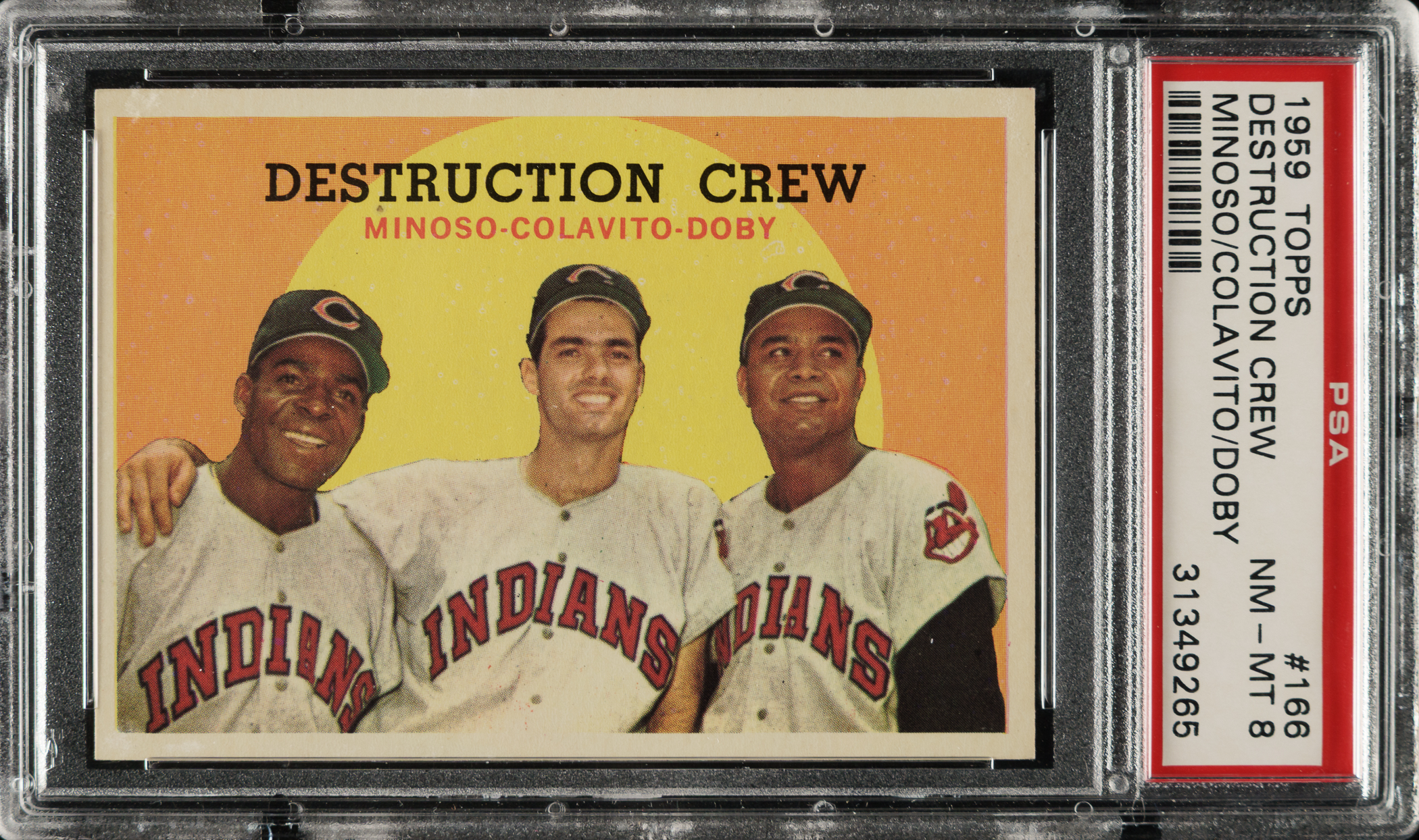 Graded NM-MT 8 by PSA. Cleveland Indians Hall of Famer Minnie Minoso and Larry Doby.