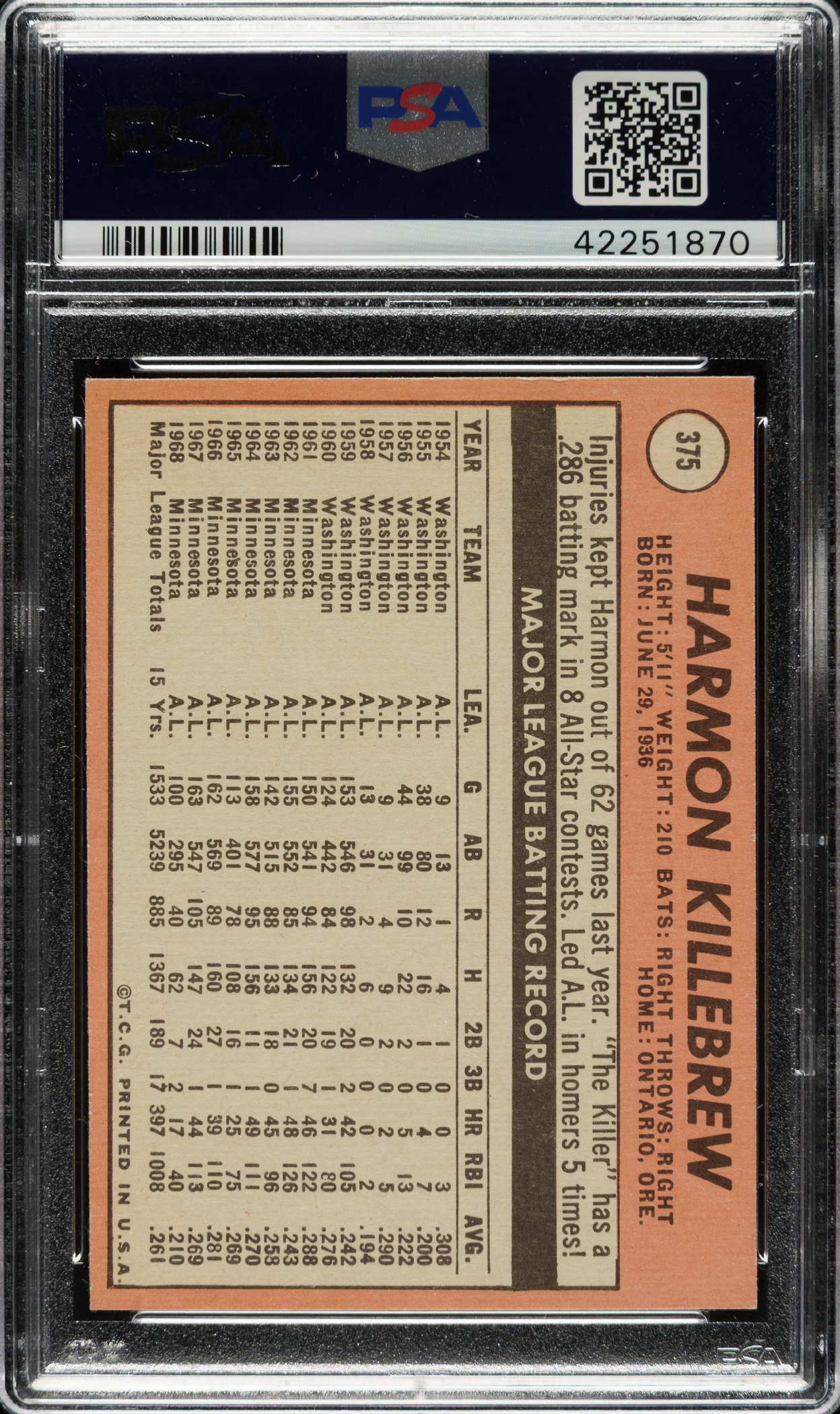 Graded NM-MT 8 by PSA. Minnesota Twins Hall of Famer Harmon Killebrew.