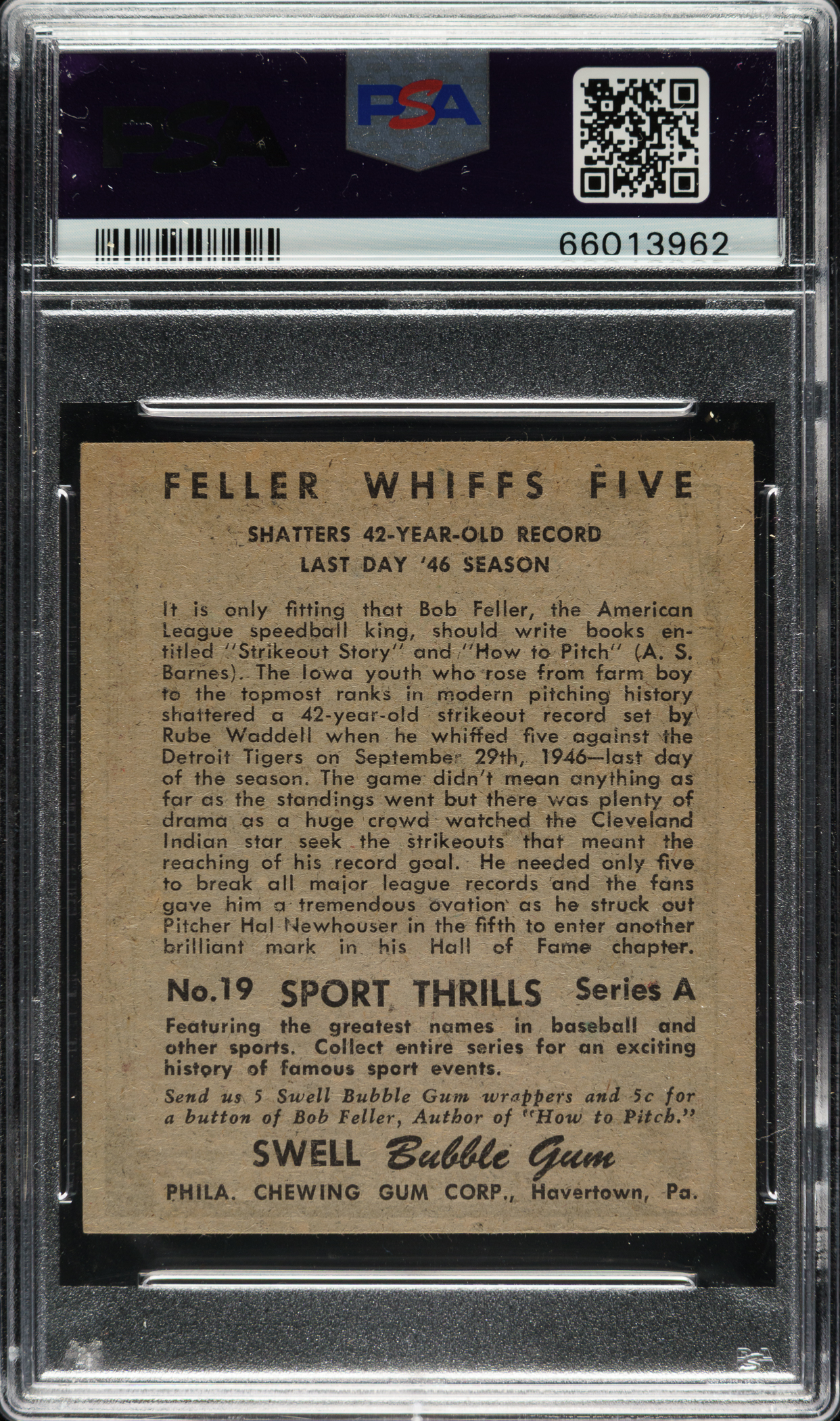 Graded EX 5 by PSA. Cleveland Indians Hall of Famer Bob Feller.