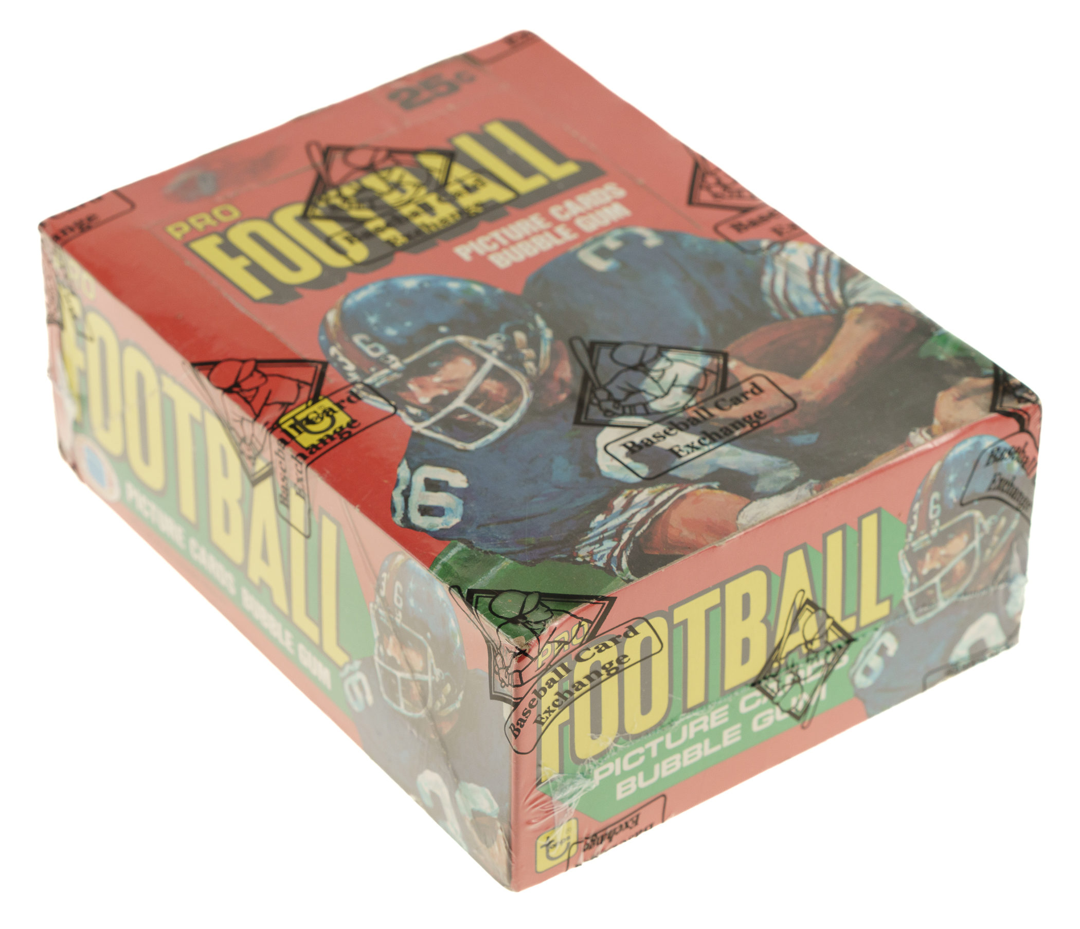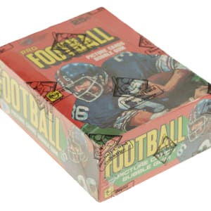 Complete, original unopened wax box of 1981 Topps football. The box houses 36 packs, with each pack containing 15 cards for a total of 540 cards. The 1981 Topps set features rookie cards of Hall of Famers Joe Montana, Art Monk, Kellen Winslow, and Dan Hampton as well as numerous other stars and Hall of Famers, including Walter Payton and Terry Bradshaw. The store display box exhibits light shelf wear, with a few marks visible along the lid. This box comes shrink-wrapped by Baseball Card Exchange (owned by Steve Hart, the foremost expert on unopened material).