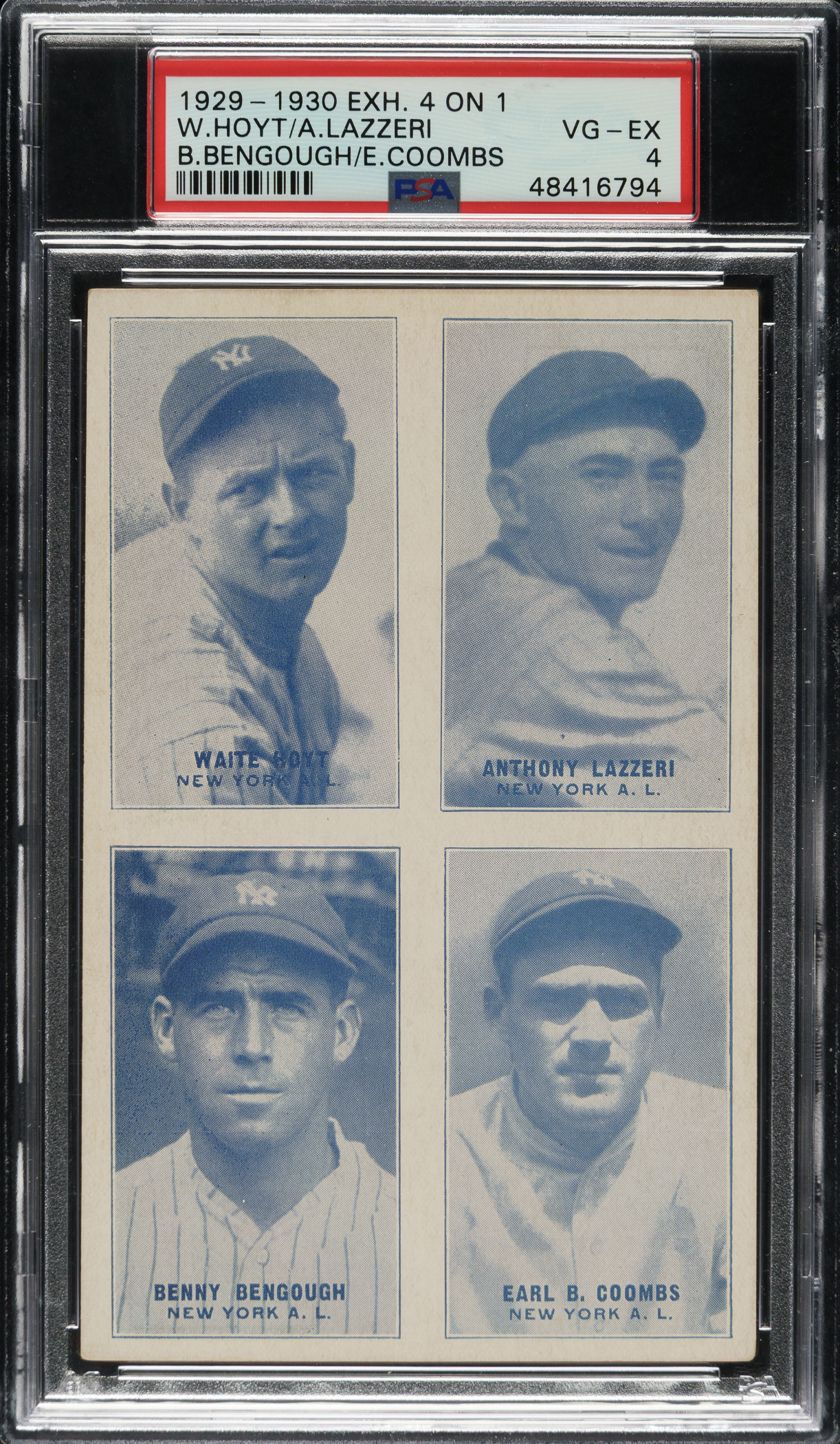 Graded VG-EX 4 by PSA. New York Yankees Hall of Famers Waite Hoyt, Tony Lazzeri and Earl Combs.
