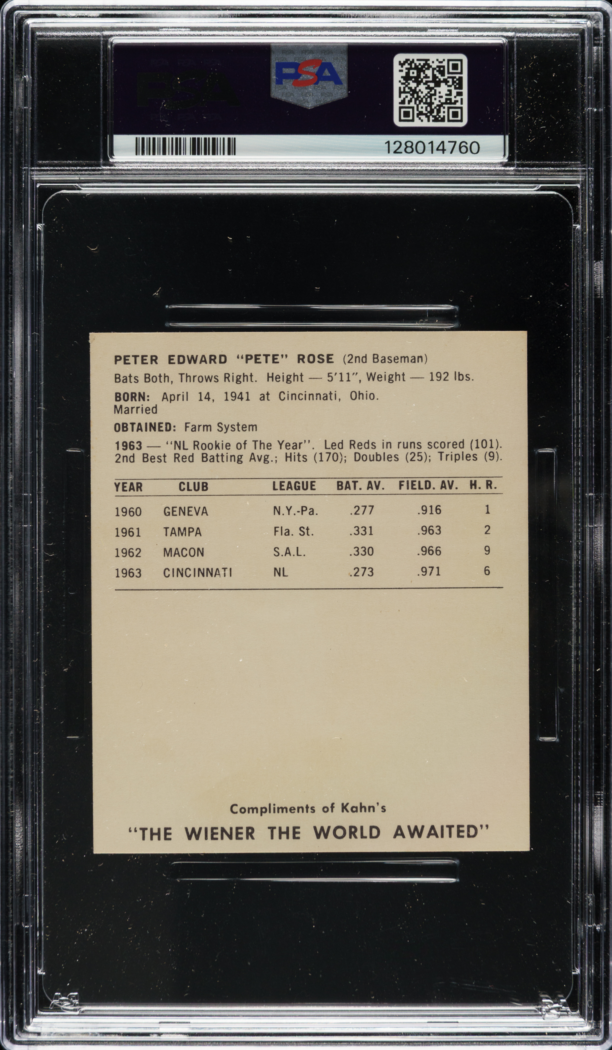 Graded EX 5 by PSA. Cincinnati Reds.