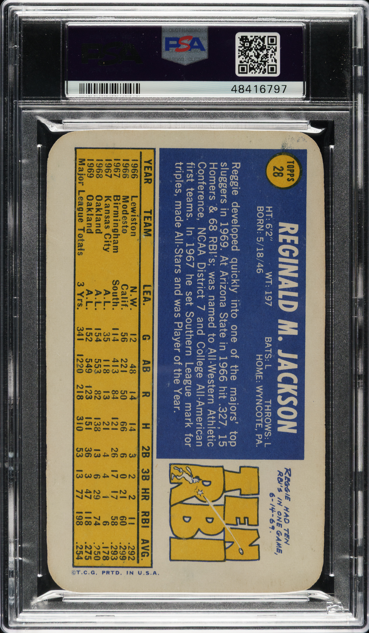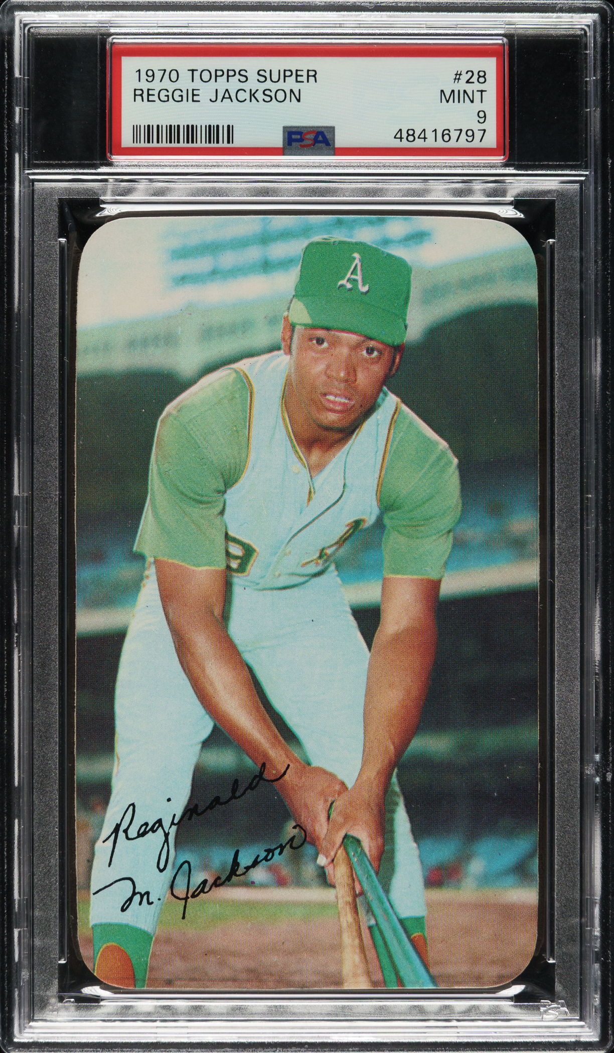 Graded MINT 9 by PSA. Oakland Athletics Hall of Famer Reggie Jackson.