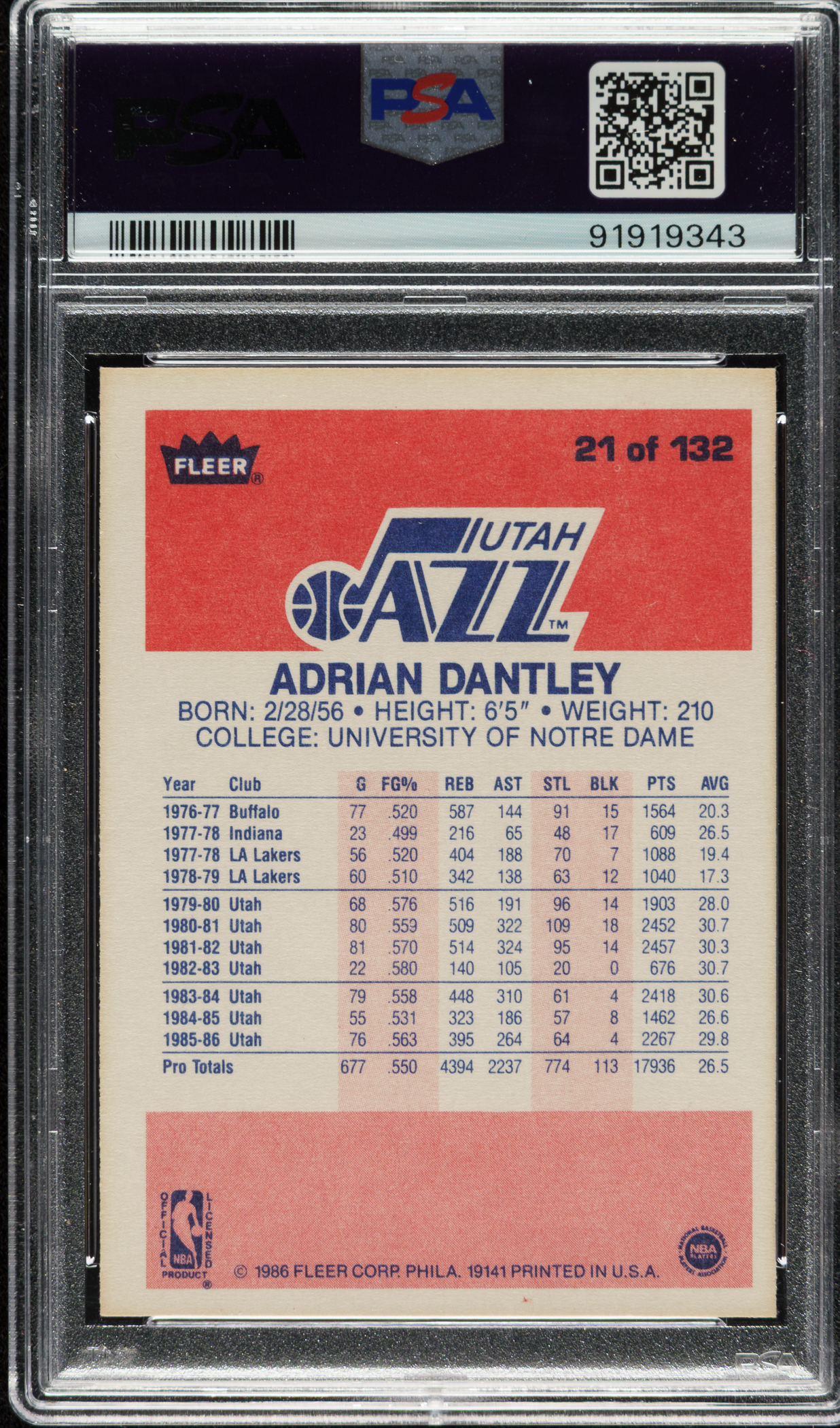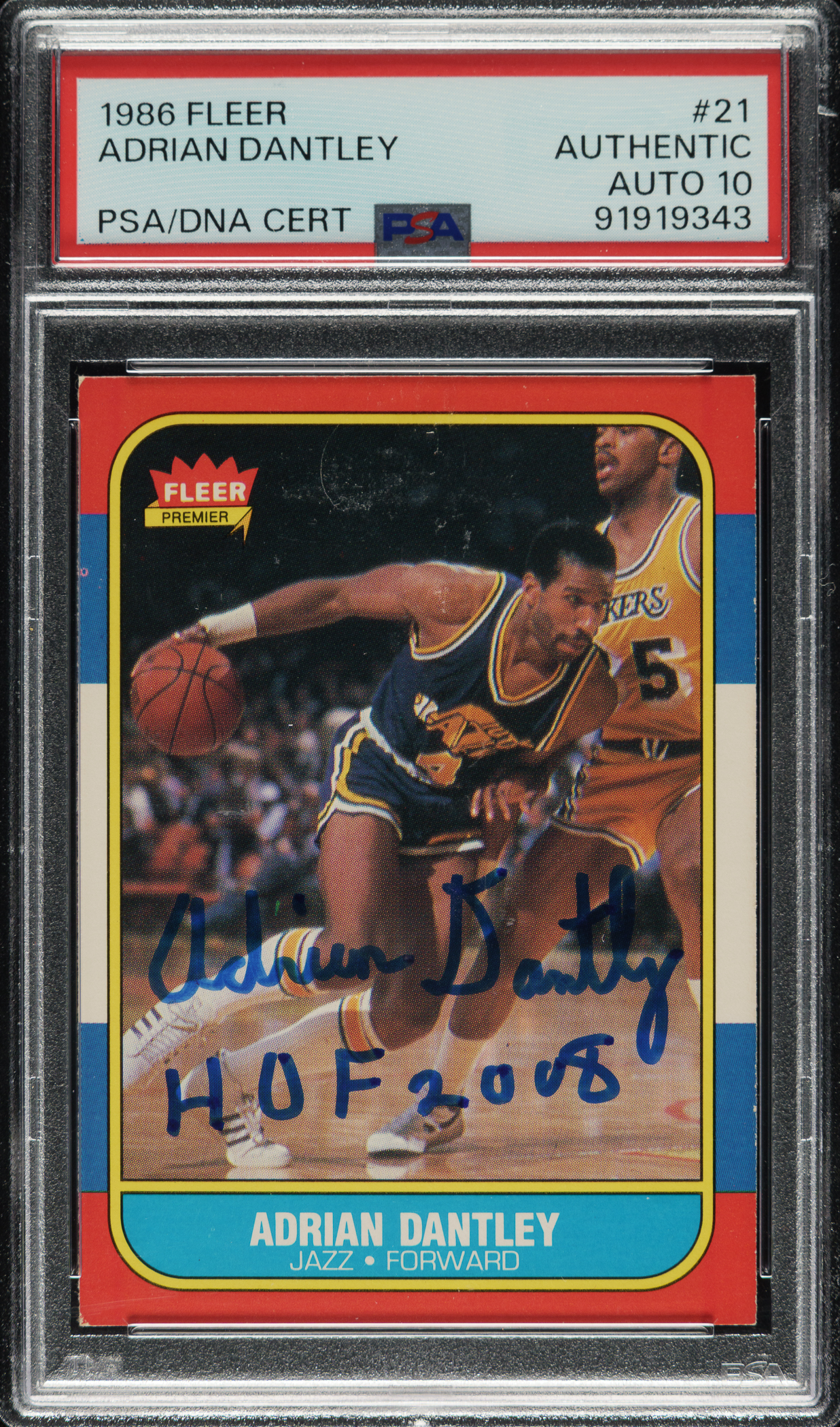 PSA/DNA has encapsulated the card, grading the signature GEM MINT 10. Utah Jazz basketball Hall of Famer Adrian Dantley.