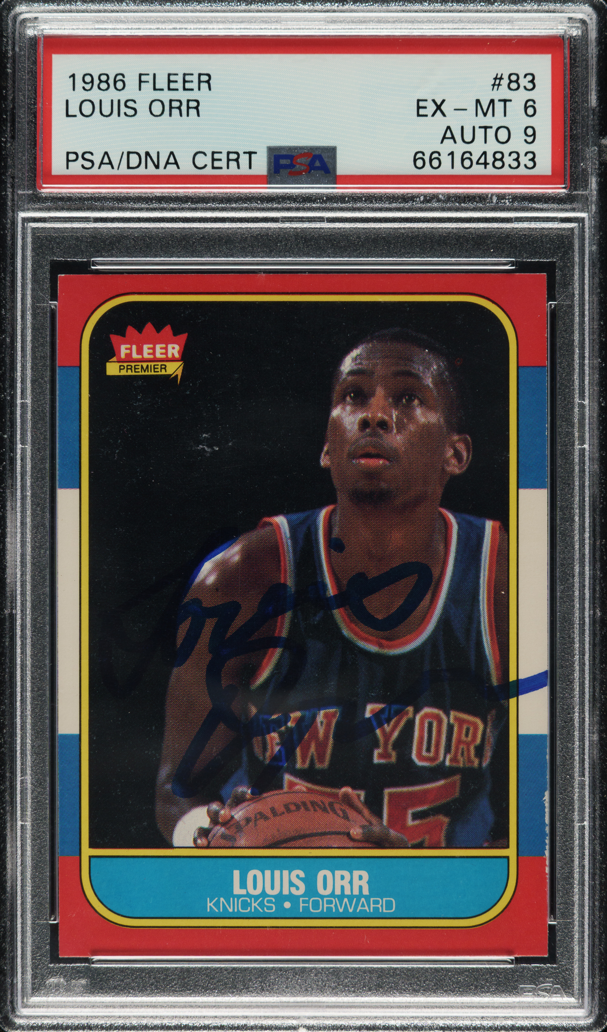 PSA/DNA has encapsulated the card, grading the signature MINT 9 and the card EX-MT 6. New York Knicks.