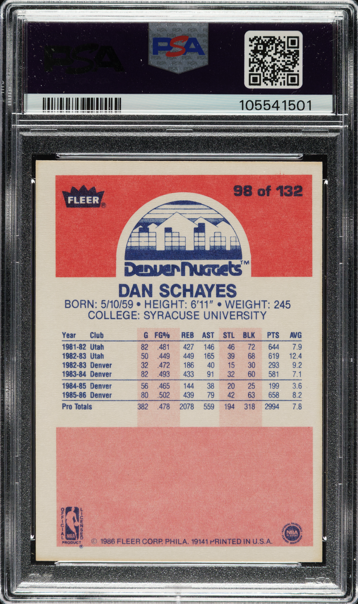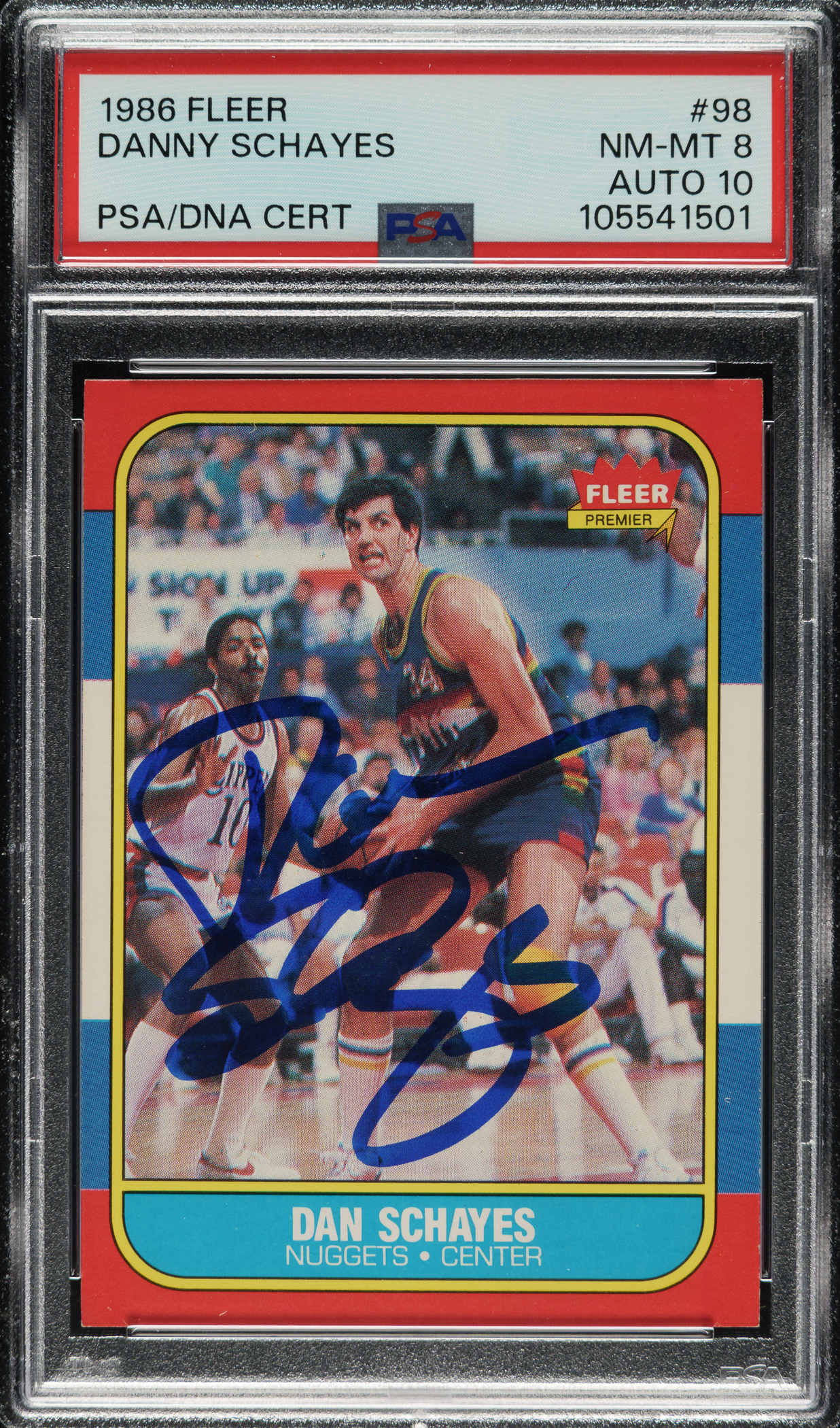 PSA/DNA has encapsulated the card, grading the signature GEM MINT 10 and the card NM-MT 8. Denver Nuggets.