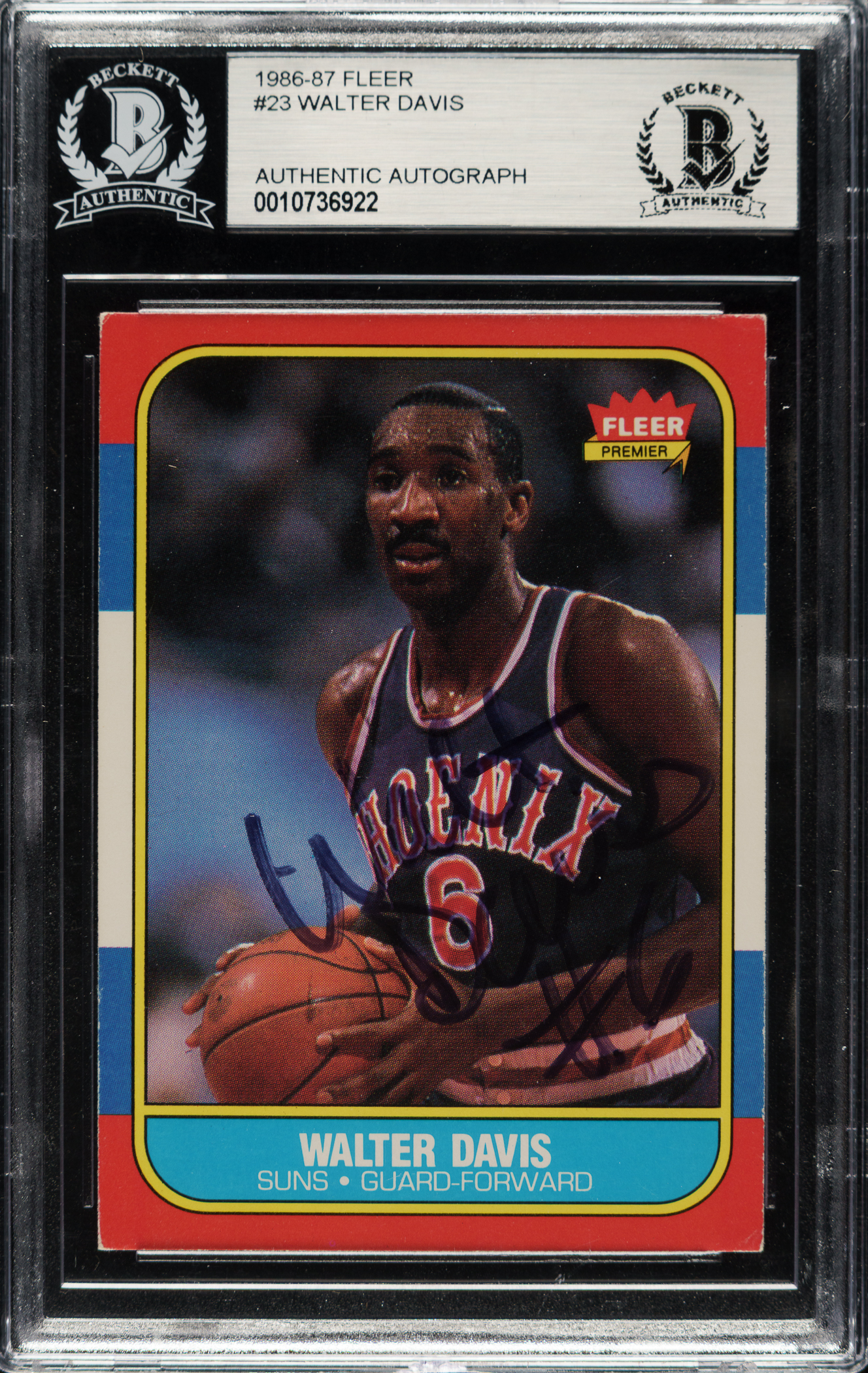Beckett has encapsulated the card, grading the signature Authentic. Phoenix Suns basketball Hall of Famer Walter Davis.