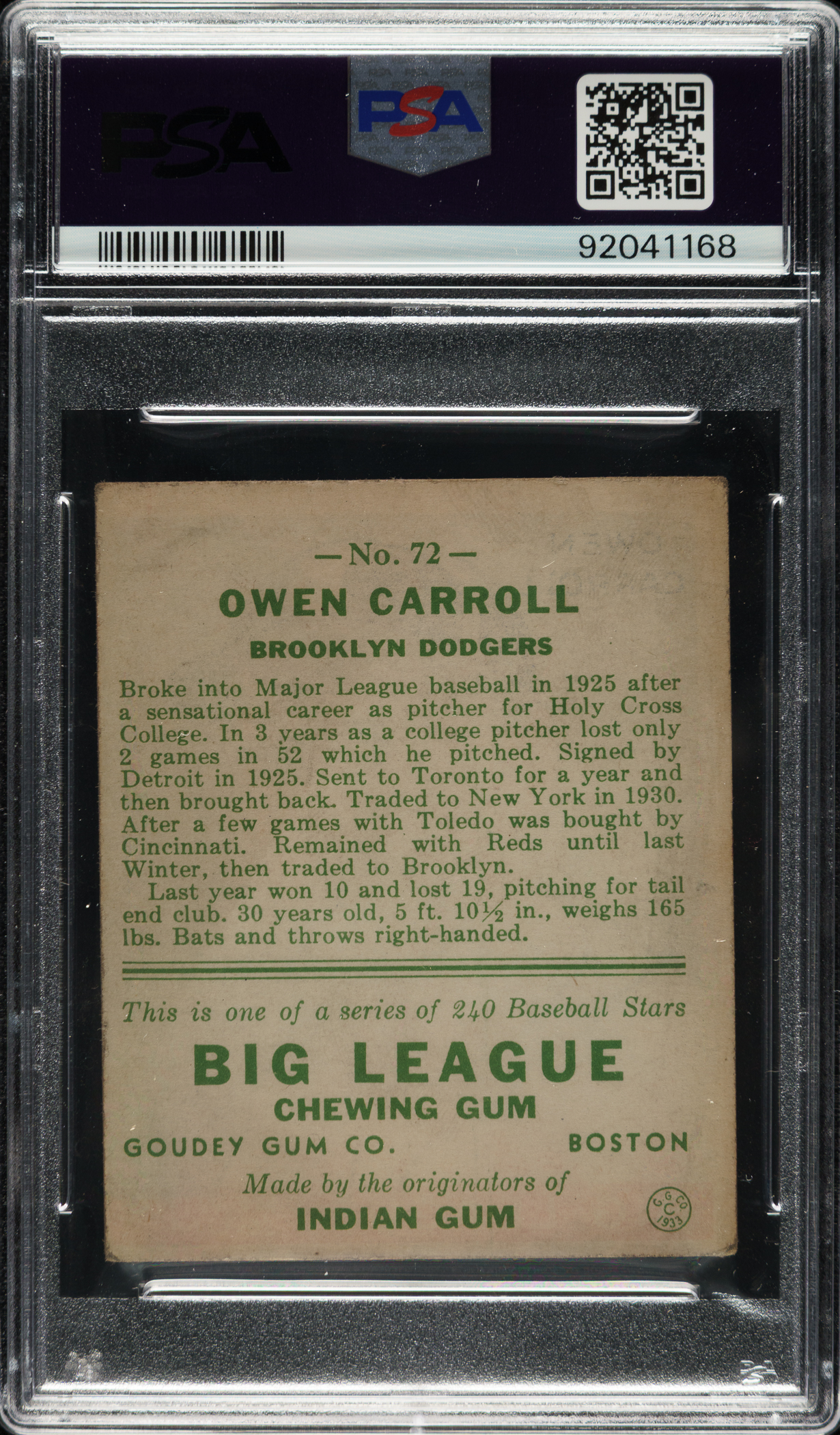 Graded VG 3 by PSA. Brooklyn Dodgers.