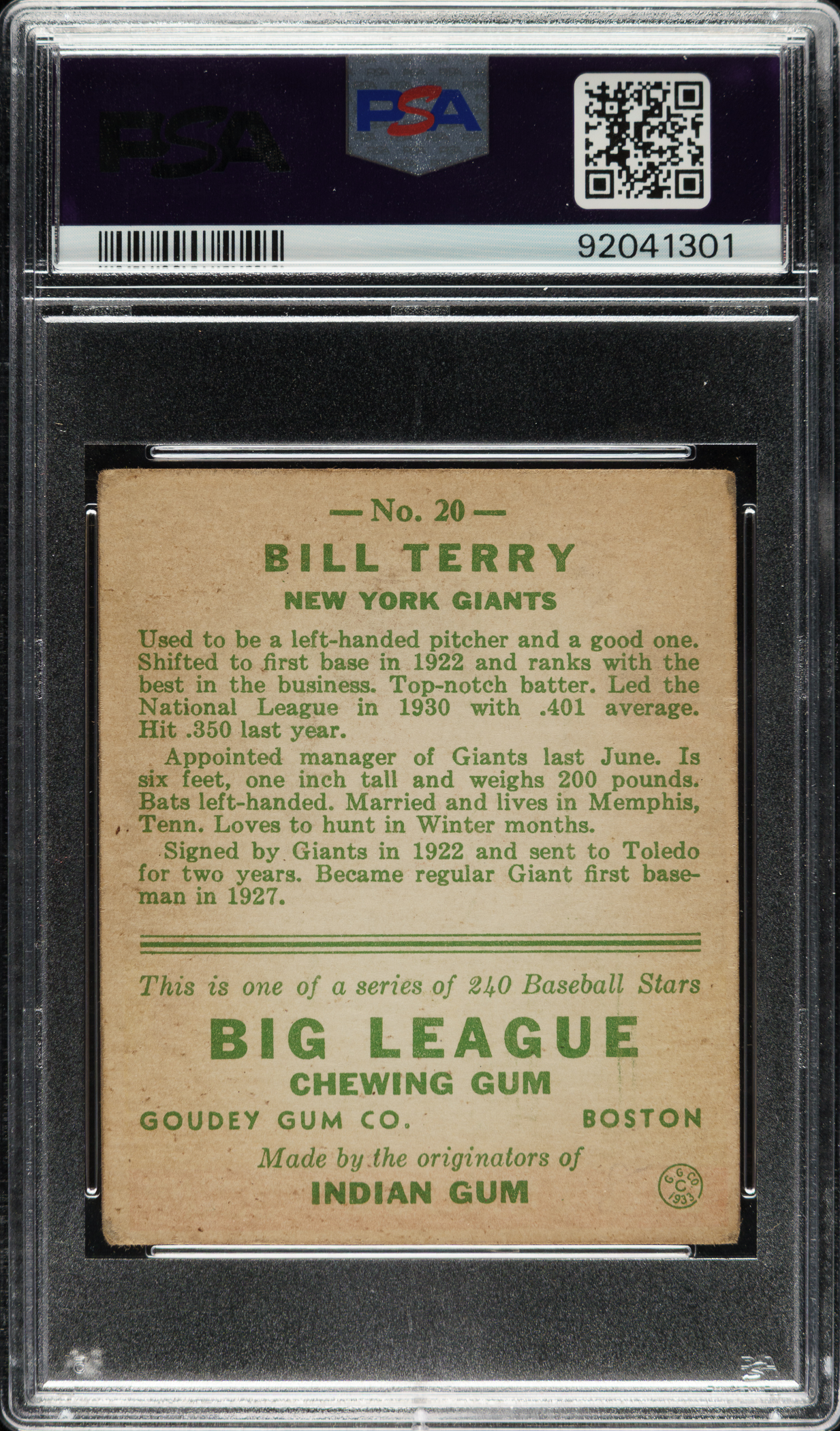 Graded GOOD 2 by PSA. New York Giants Hall of Famer Bill Terry.