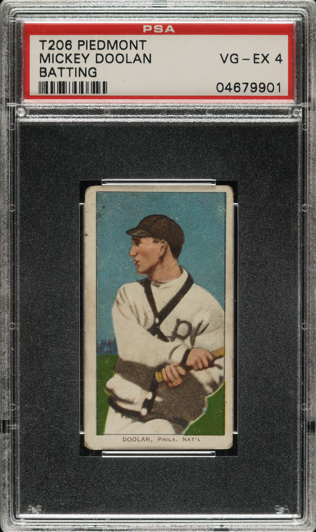 Lot # 269: 1909-1911 T206 White Border Mickey Doolan Batting PSA VG-EX 4