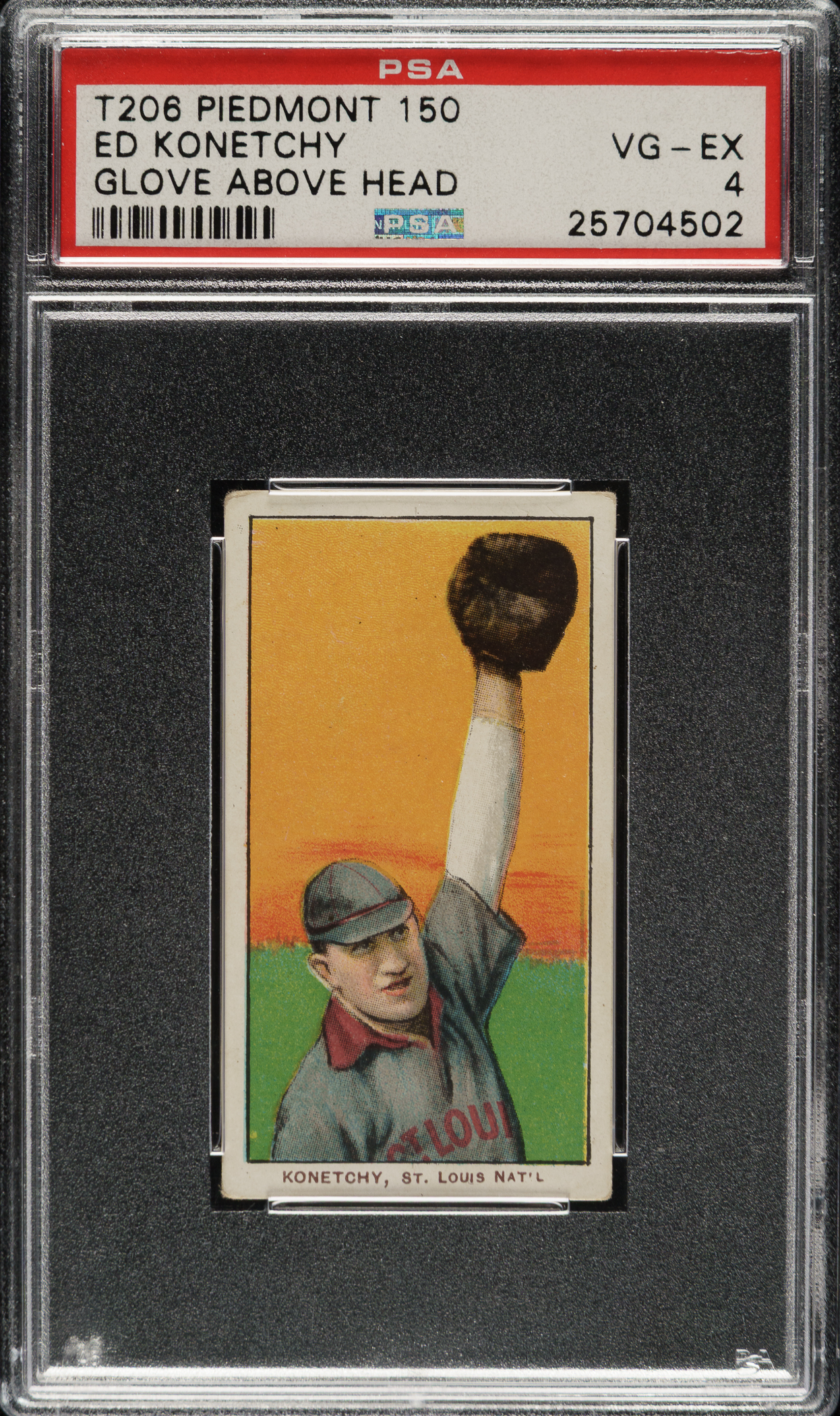 Lot # 452: 1909-1911 T206 White Border Ed Konetchy Glove Above Head PSA VG-EX 4