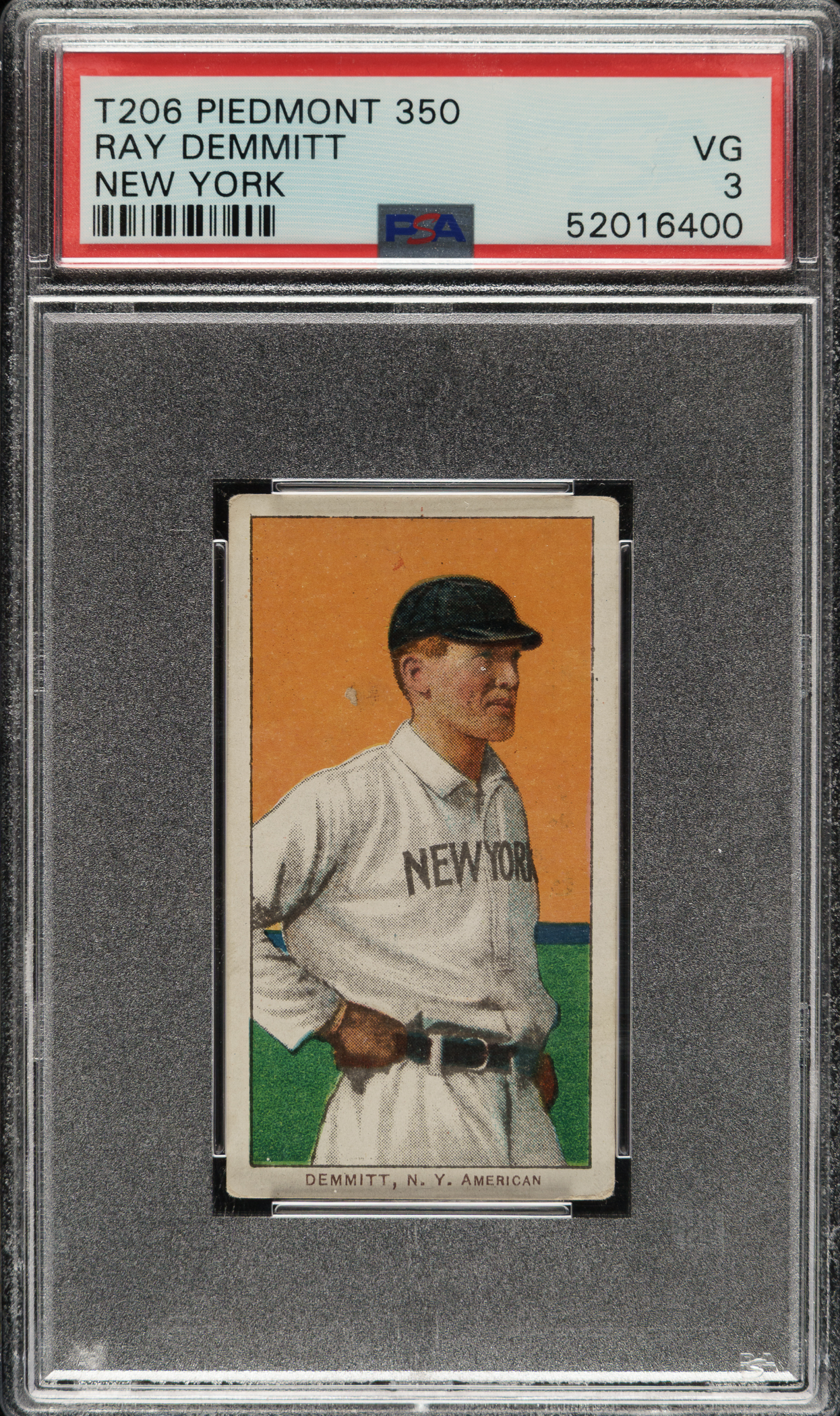 Lot # 260: 1909-1911 T206 White Border Ray Demmitt New York PSA VG 3