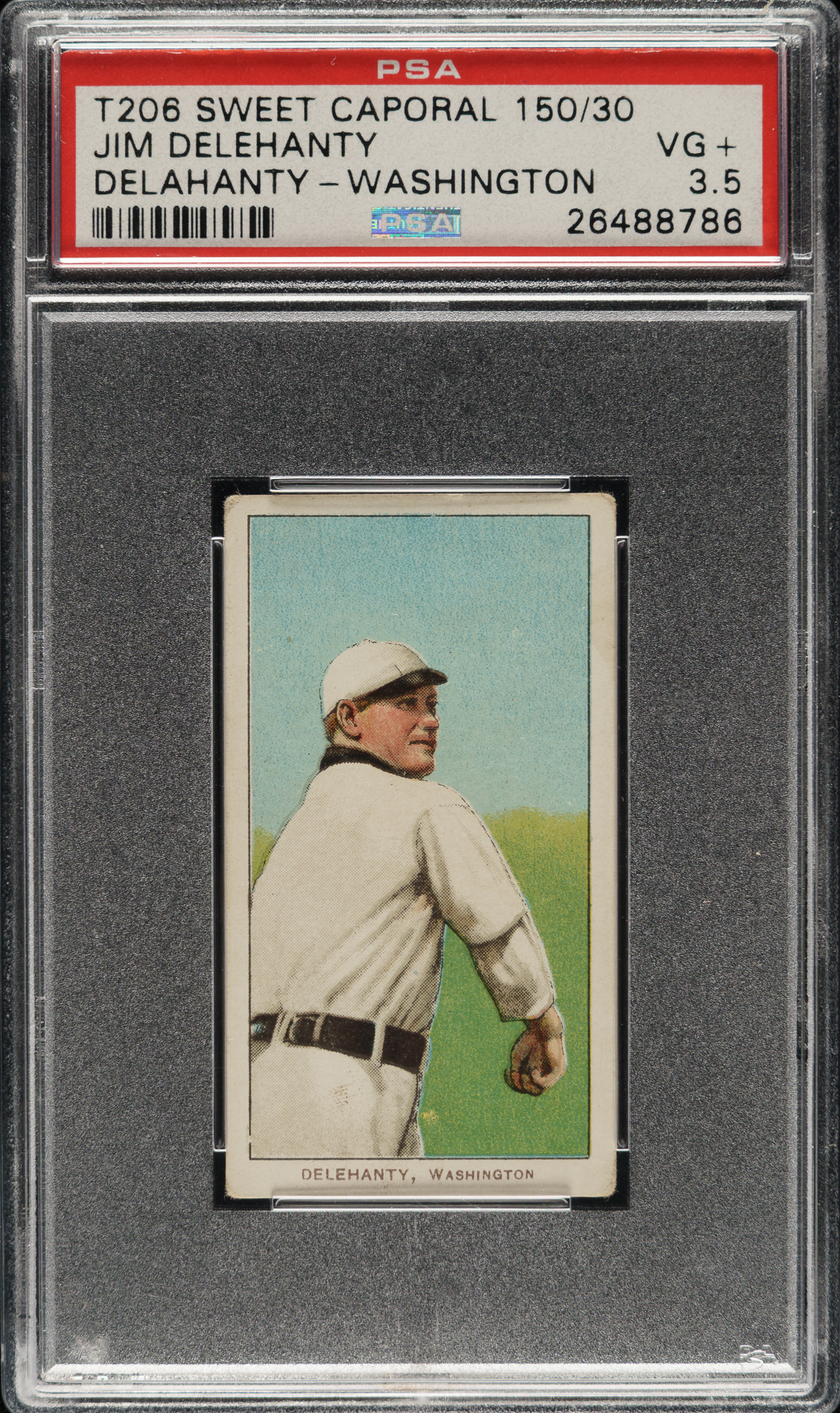 Lot # 259: 1909-1911 T206 White Border Jim Delehanty PSA VG+ 3.5