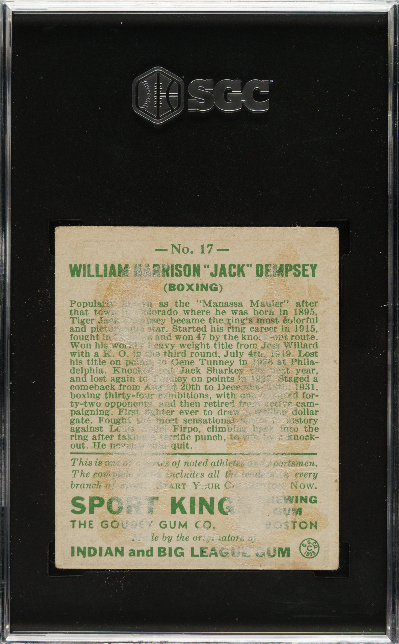 Graded POOR 1 by SGC. Boxing Hall of Famer Jack Dempsey.