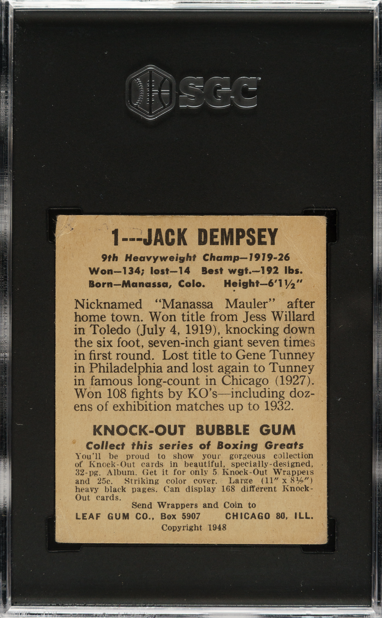 Graded FAIR 1.5 by SGC. Boxing Hall of Famer Jack Dempsey.