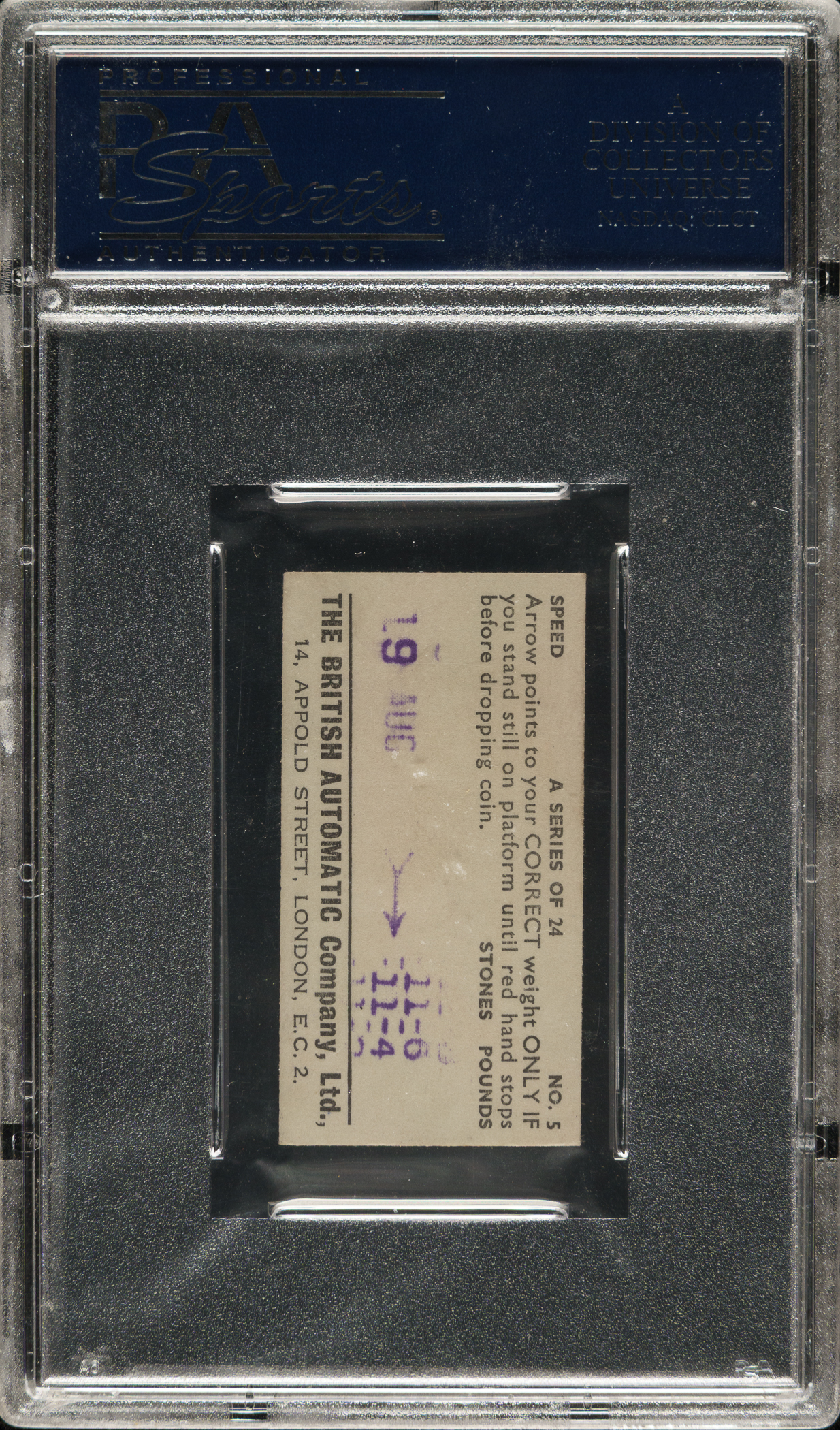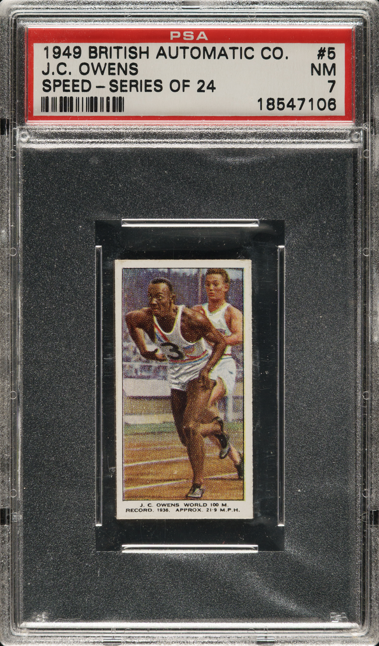 Lot # 3272: 1949 British Automatic Co. Speed #5 Jesse Owens PSA NM 7