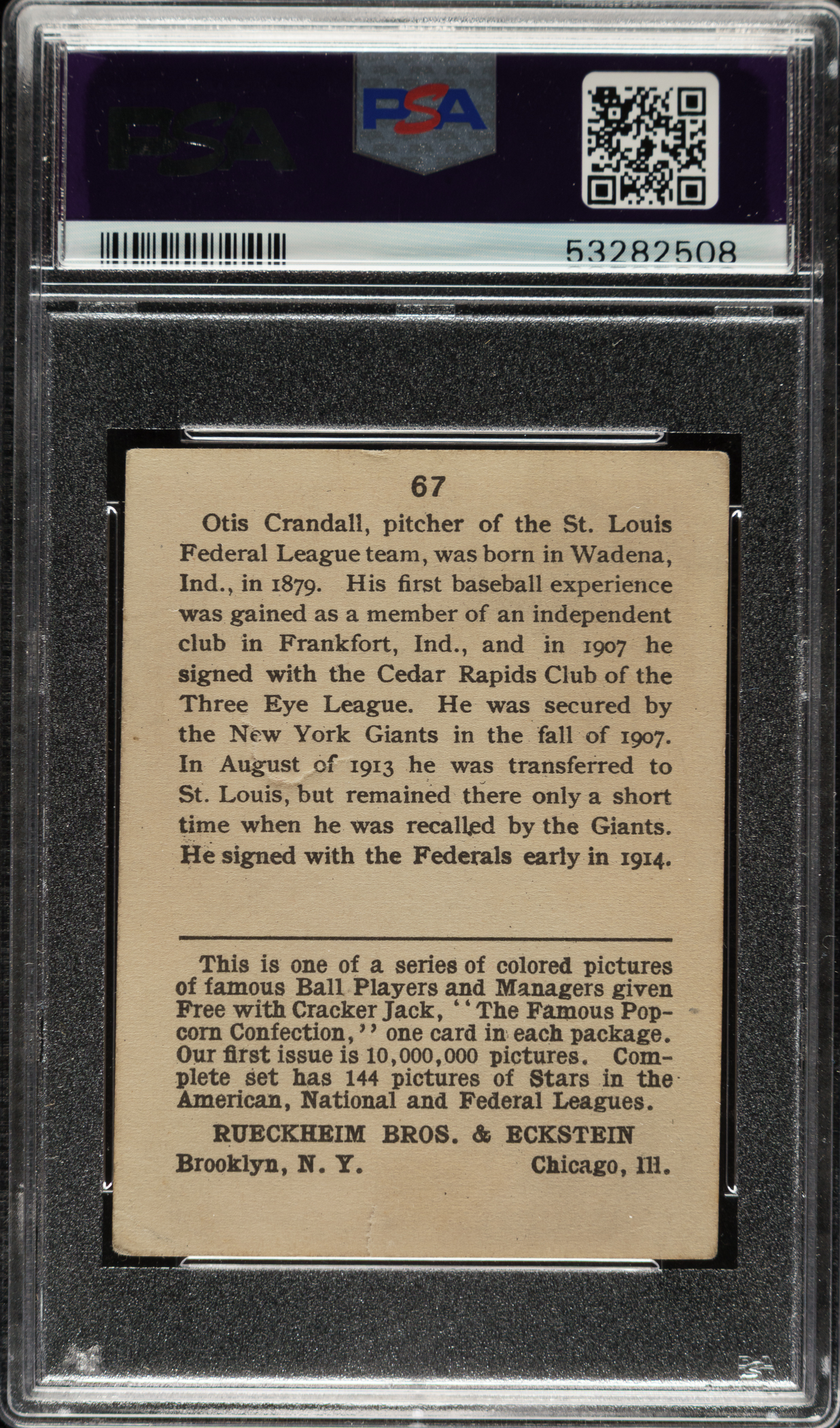 Graded POOR 1 by PSA. St. Louis Terriers Federal League.