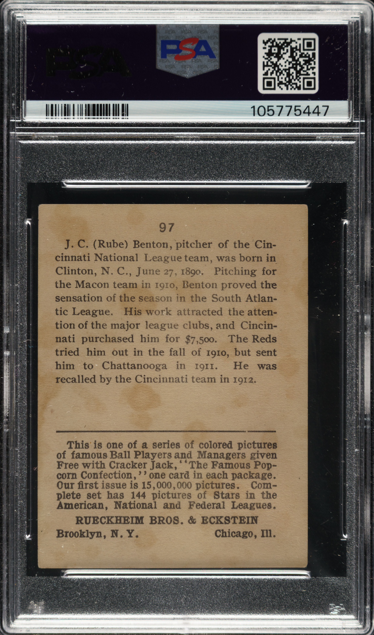 Lot # 3192: 1914 E145 Cracker Jack #97 Rube Benton PSA GOOD 2
