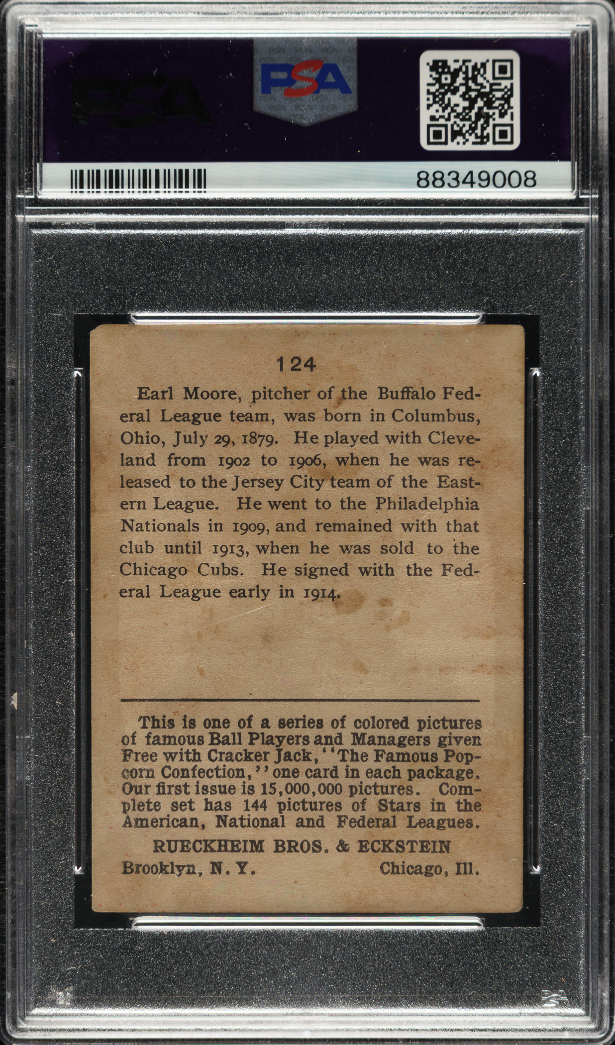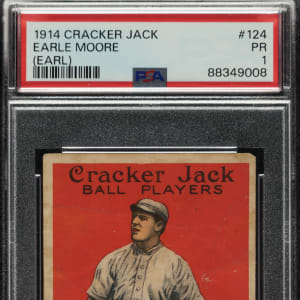 Lot # 3169: 1914 E145 Cracker Jack #124 Earl Moore PSA POOR 1