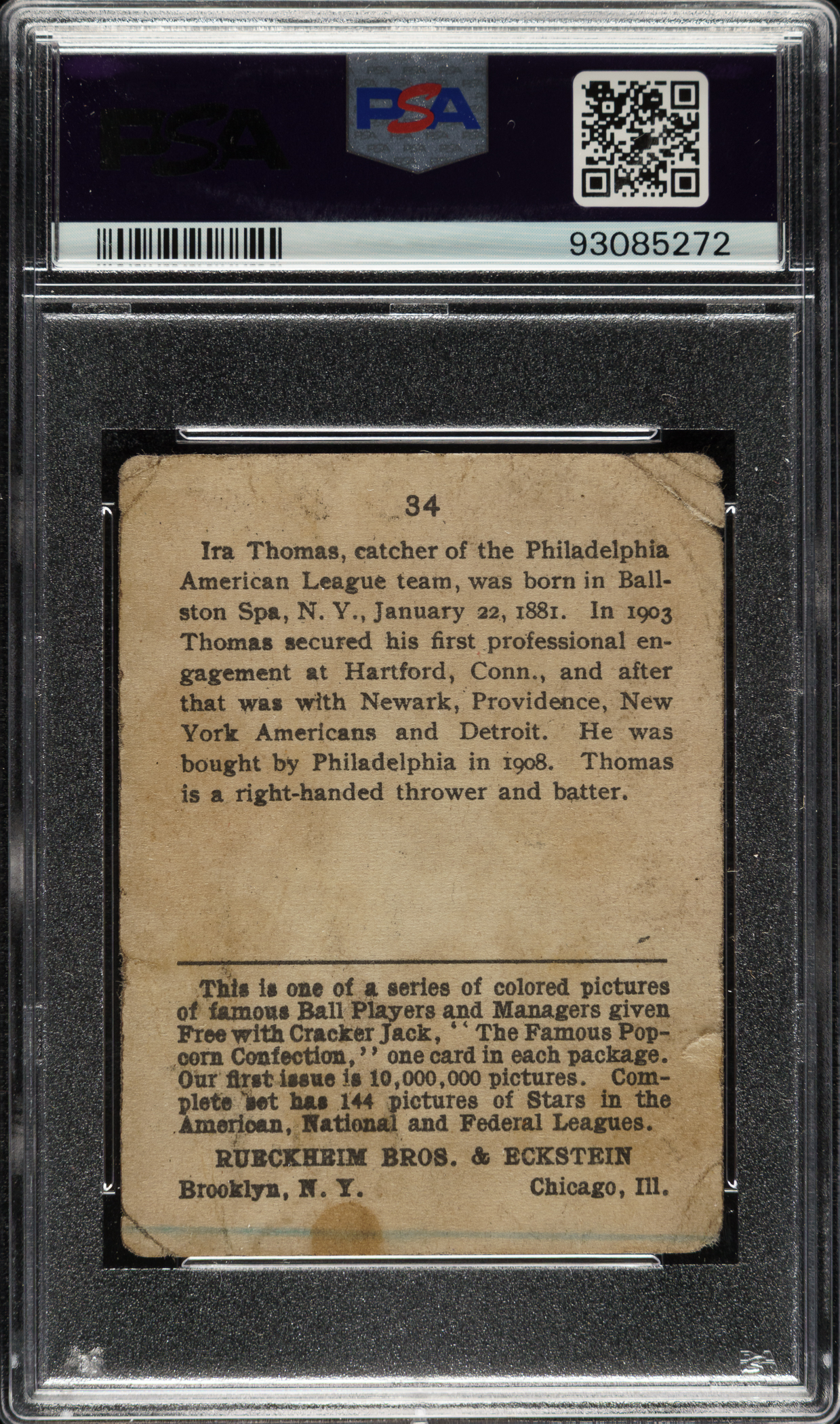 Graded FAIR 1.5 by PSA. Philadelphia Athletics.