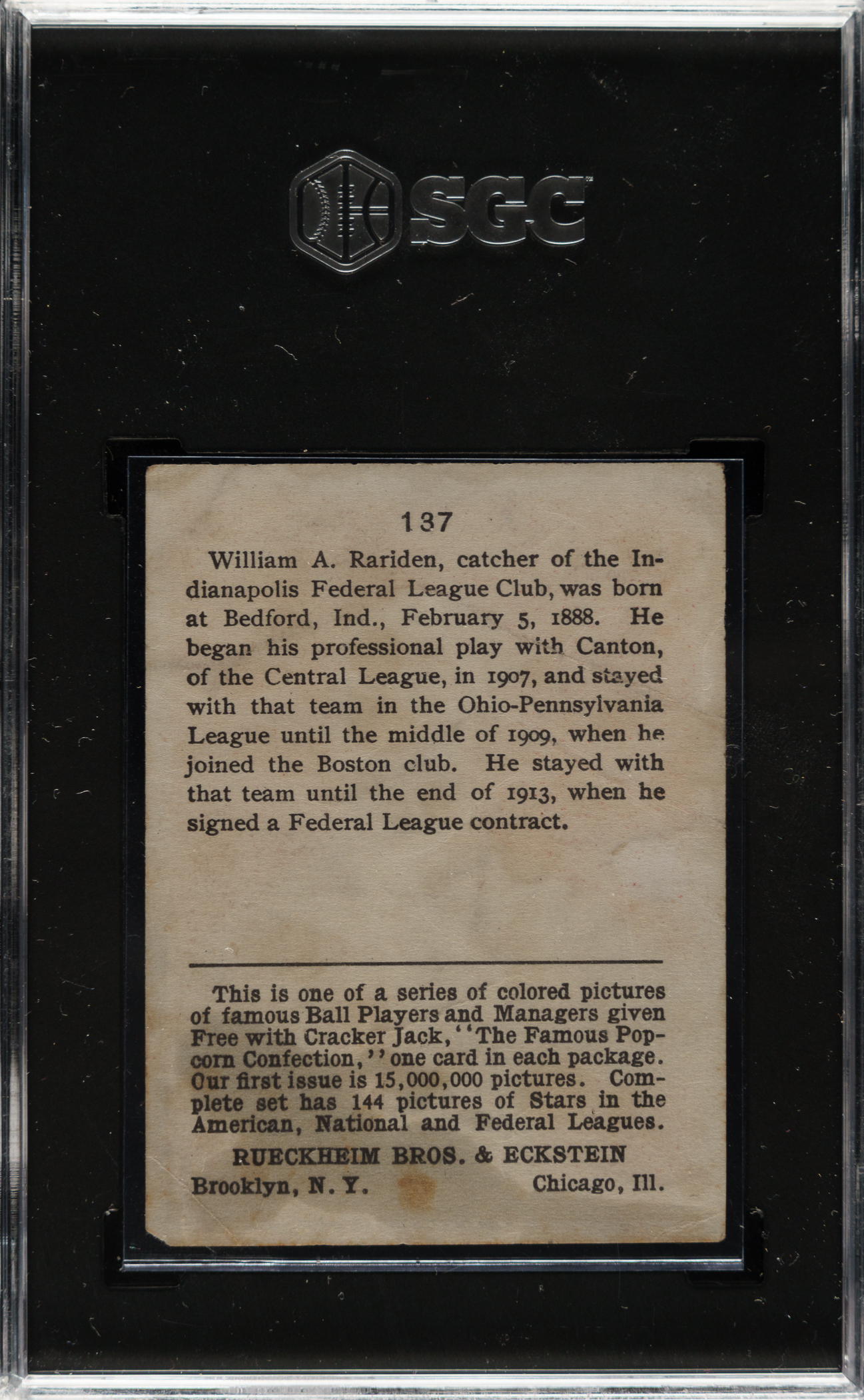 Graded POOR 1 by SGC. Indianapolis Hoosiers Federal League.
