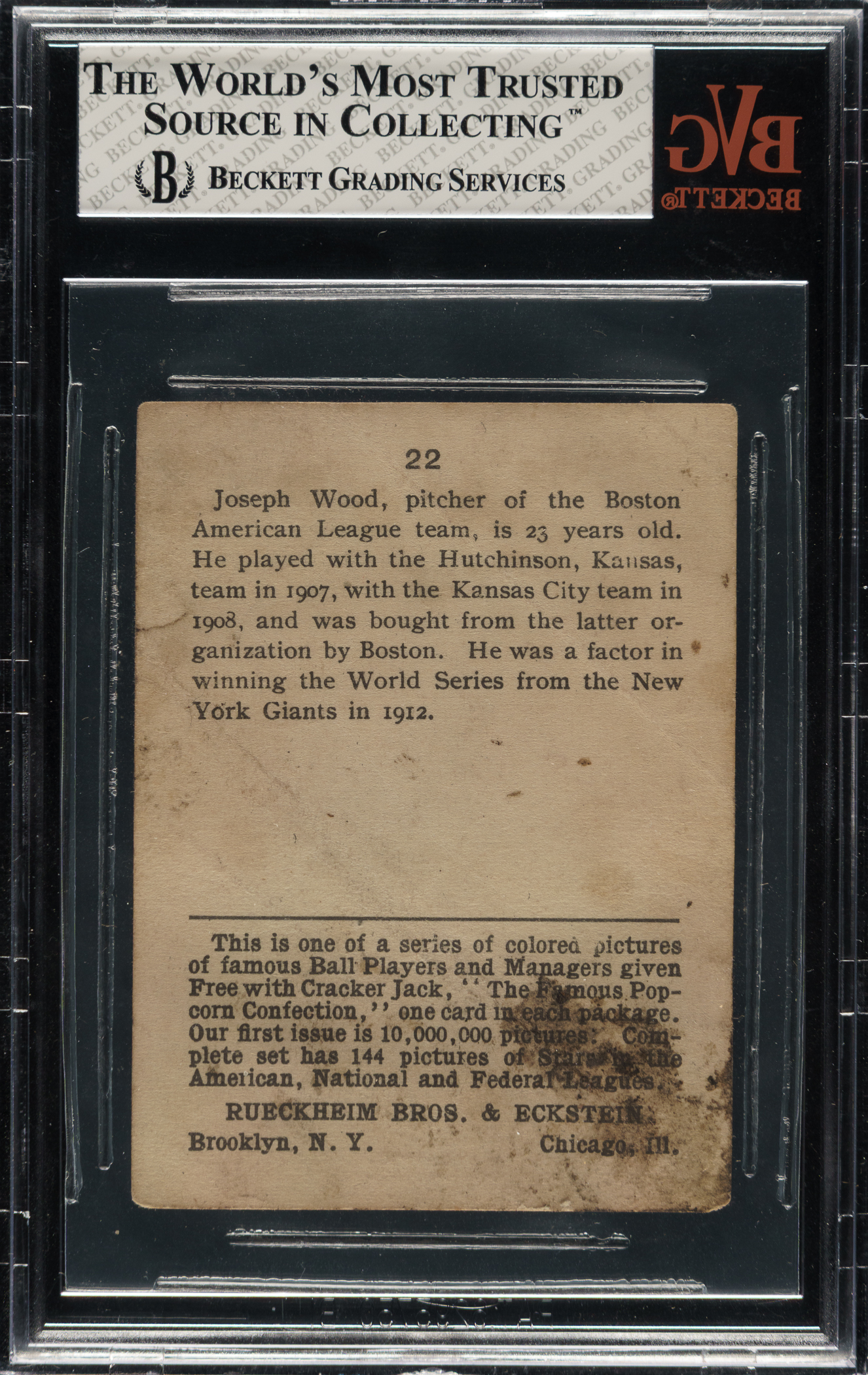 Graded GOOD 2 by BVG. Boston Red Sox. Pedigreed from the "Chicago Cracker Jack Find."