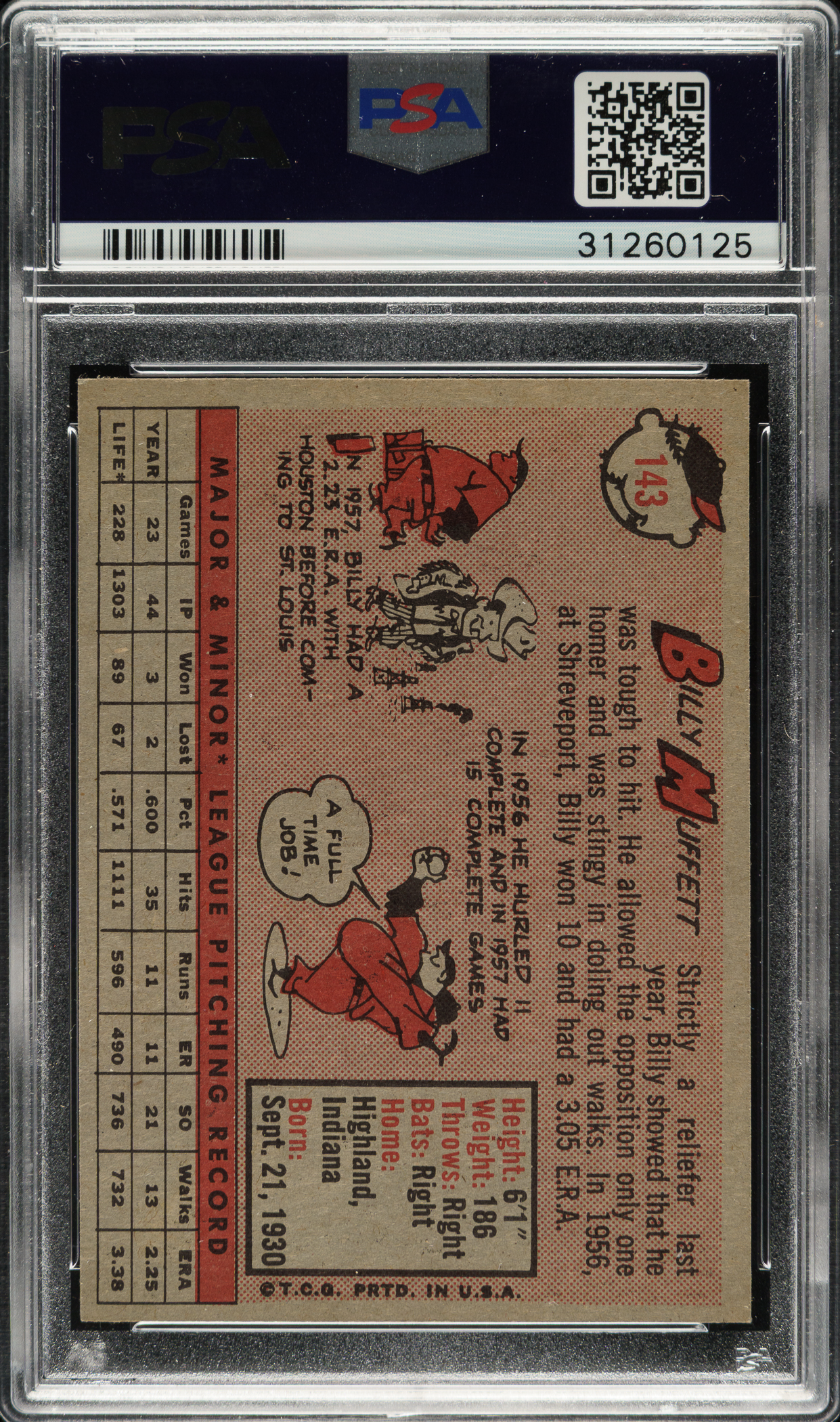 Lot # 1731: 1958 Topps #143 Billy Muffett PSA MINT 9