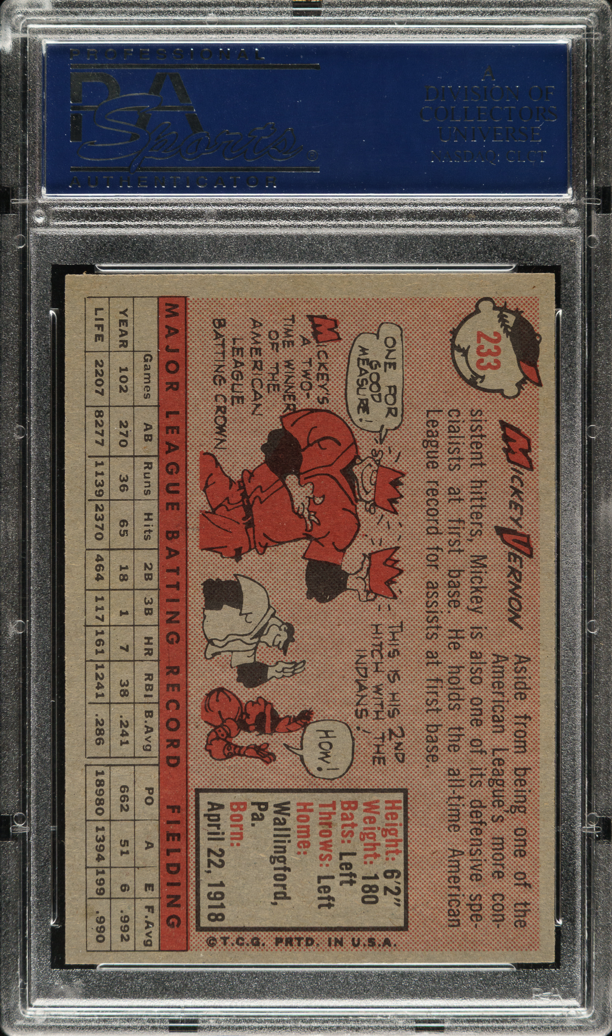 Graded MINT 9 by PSA. Cleveland Indians.