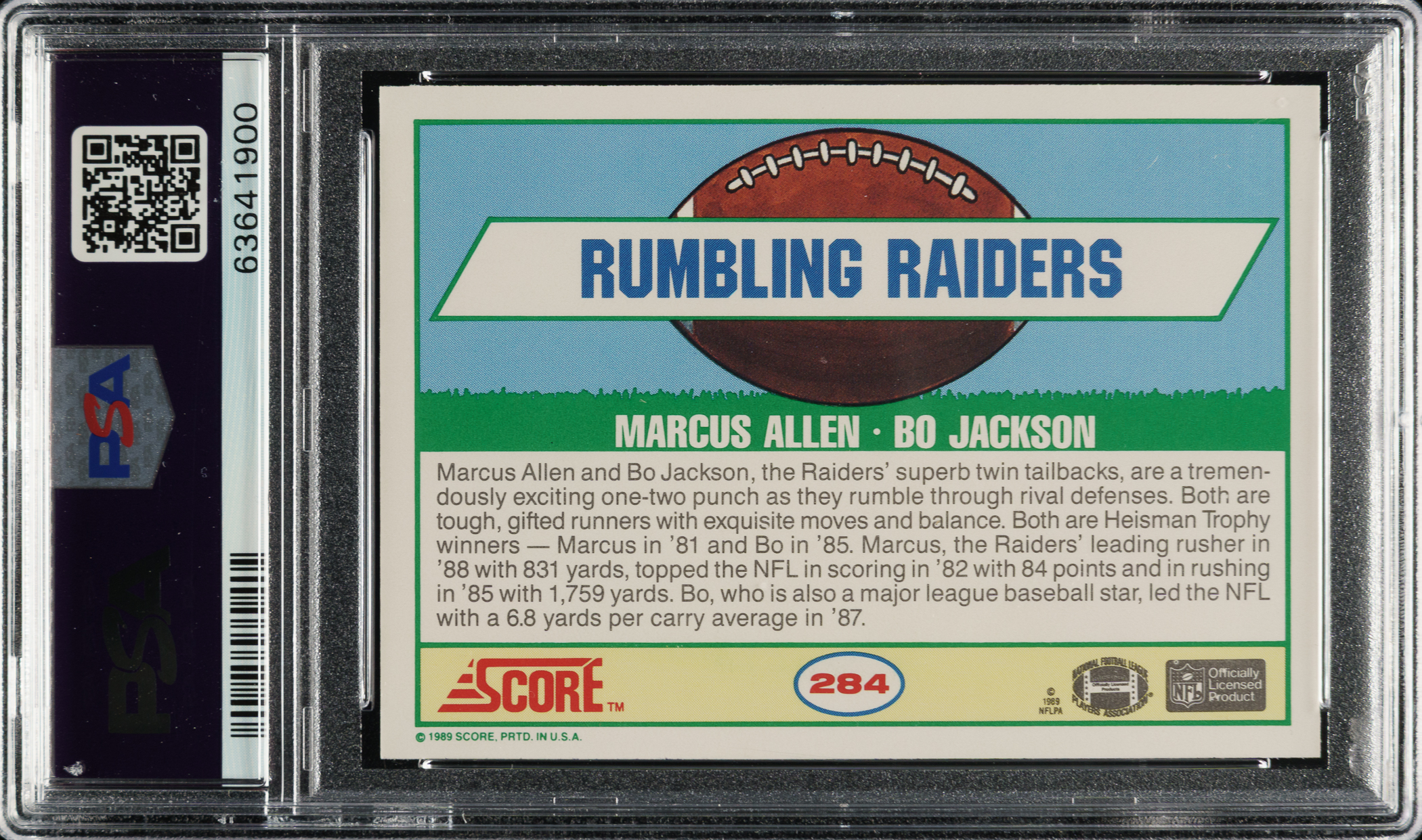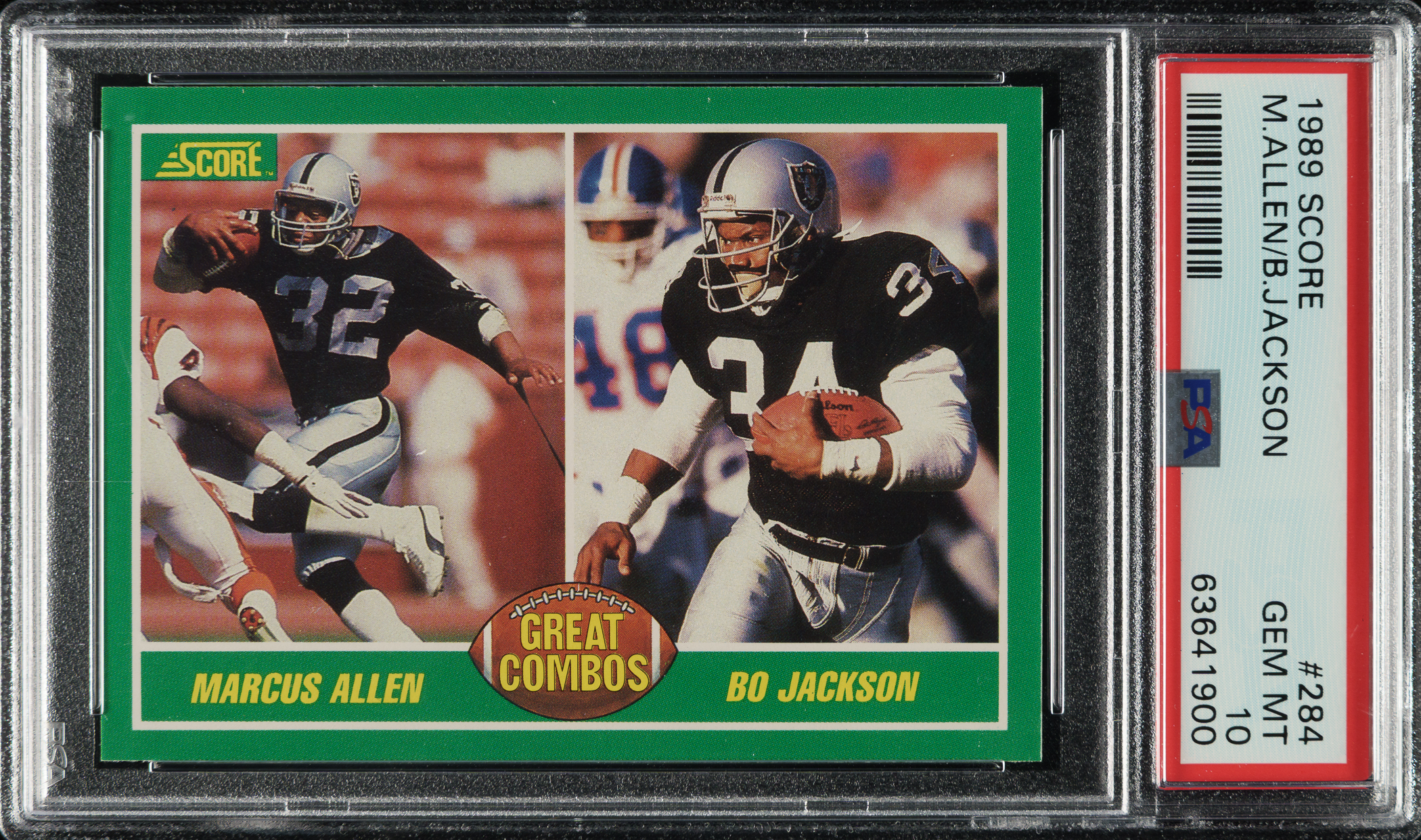 Graded GEM MINT 10 by PSA. Los Angeles Raiders football Hall of Famer Marcus Allen.